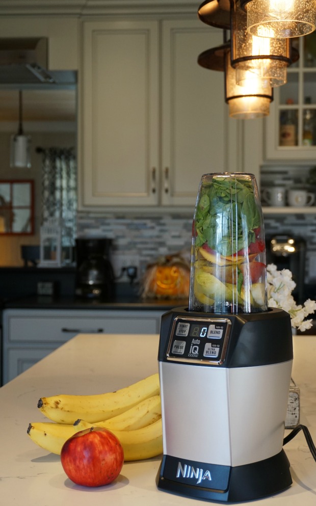 Aside from being beautiful, slim [which is perfect for storing inside a cabinet], and ultra modern – this blender is like one of those Olympic athletes that you just don’t believe is really that good, because how? But they are and so is this. This blender takes the guesswork out of making your favorite juices, dips [hummus anyone?] and other delicious items with its auto-IQ technology which sets the appropriate time and counts down for you on its digital display timer. You simply fill one of your cups [either 18 oz or 24 oz] with your ingredients [whole fruits and veggies are perfect], turn it on and let it use its auto IQ technology to deliver you the perfect consistency of juice in the matter of seconds. Unscrew your cup from the base, screw on the lid and you are good to go for the day! The cleanup is incredibly easy [literally, next to none] and well, have I said that I loved this yet? Truly the blender of the year. If you have been wanting to give juicing a try, look no further. Here’s what I put in mine…