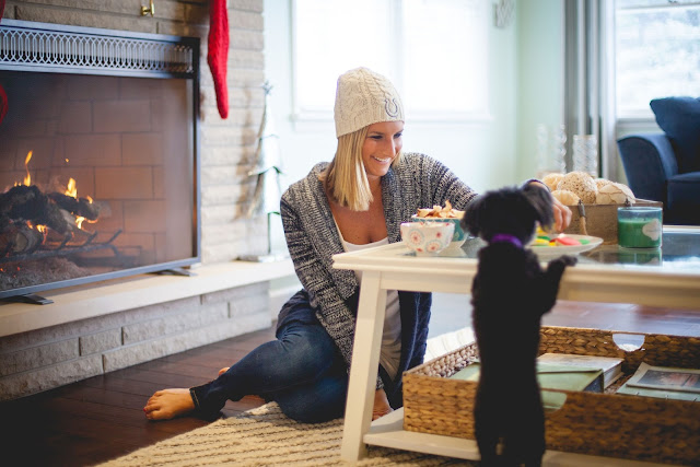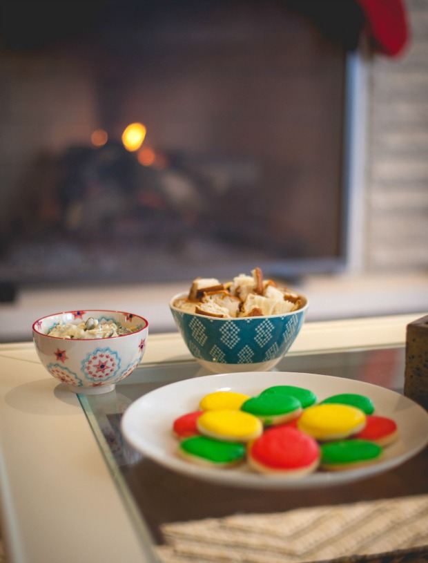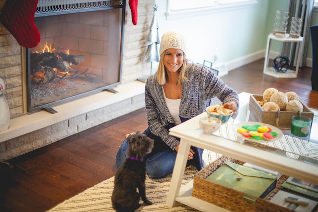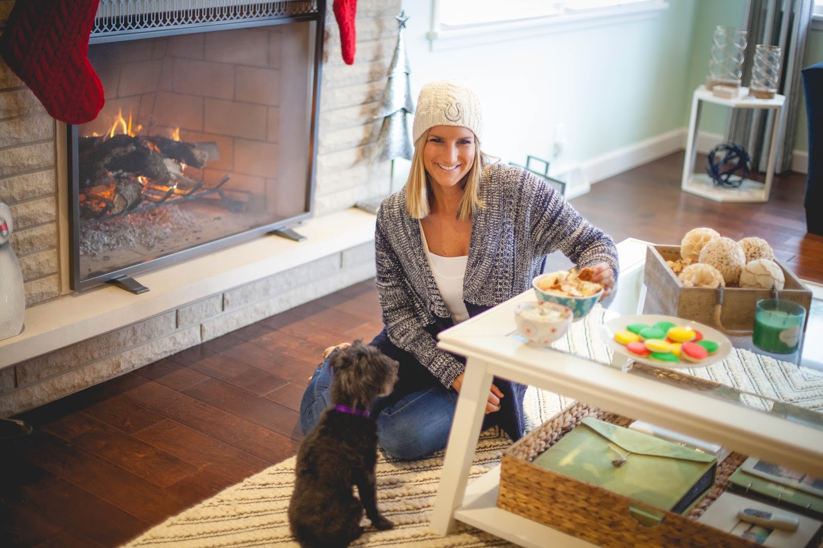 After six feet of snow get dumped on you in a single day, it leaves little options as to what to do other than – “HEY HUNNY! BUILD ME A FIRE! WE AREN’T LEAVING FOR THE NEXT 48 HOURS SO MAKE YOURSELF COMFORTABLE!” And so that’s what we did. I bundled up in my favorite Colts gear from the NFL shop [since when did sports gear get so fashionable? I’m loving this trend], whipped up some tasty spinach and artichoke dip and made a day of staring back and forth between the fire and the game. Maggie was loving it just as much if not more than we were.