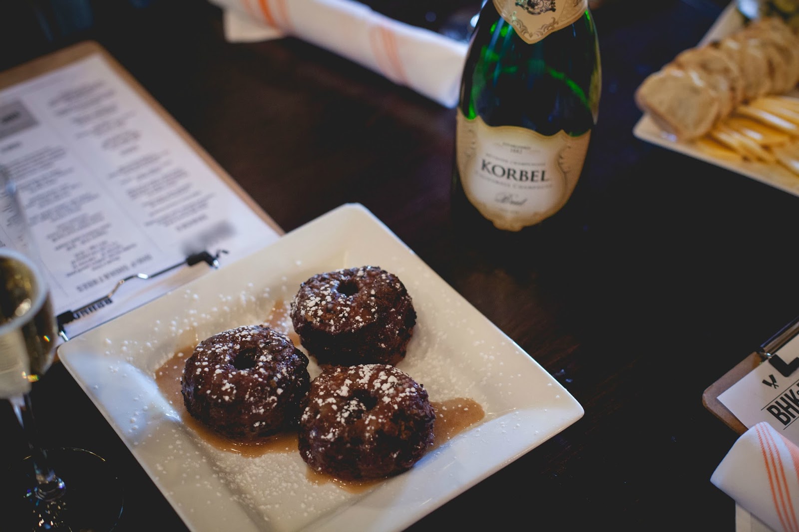 To sweeten things up a bit we also ordered the maple bacon croissant donuts [amazing], brioche stuffed french toast with sauteed apples, and pancakes with a lemon blueberry peach compote on top. To top it off we enjoyed a glass or two of the Sweet Rose as it pairs wonderfully with fruit because hello, did you see the list of fruit topped on all of the above 😉