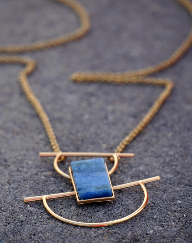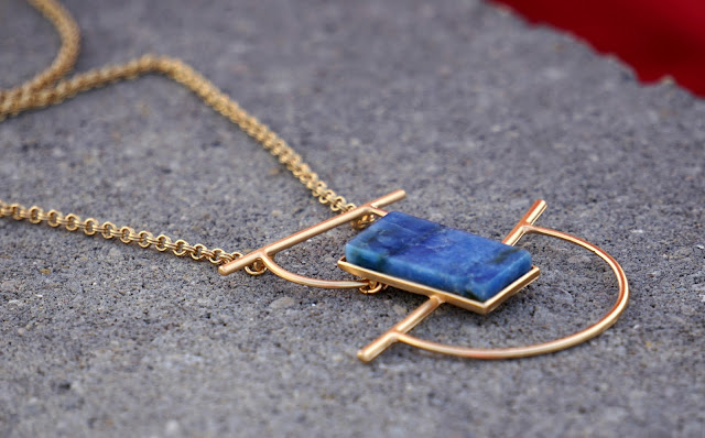 Because a sweatshirt with nothing else is just a sweatshirt, we added in this long gold geometric necklace with a cobalt blue stone for a punch of polished fun. And people thought sweatshirts had to be boring…
