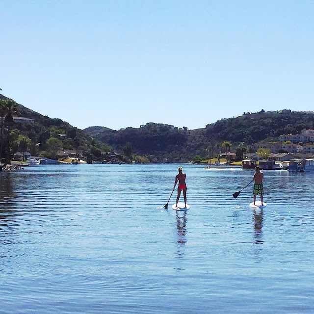 By the time 1 pm rolled around, I was tired of laying around [WTF WAS I THINKING] and so I convinced Shawn that we needed to try our hand at paddle boarding. Neither one of us had done this before so I was slightly concerned that I was going to face plant into the lake, but it turned out to not be nearly as difficult as assumed. This was probably one of the highlights from the trip for me – we were able to go for a mile and then turn around and come back to the resort. As you go further, you find yourself in between two giant hills [think mountains] and it’s nothing but you, the birds, and your board. Dang, that was a good moment.