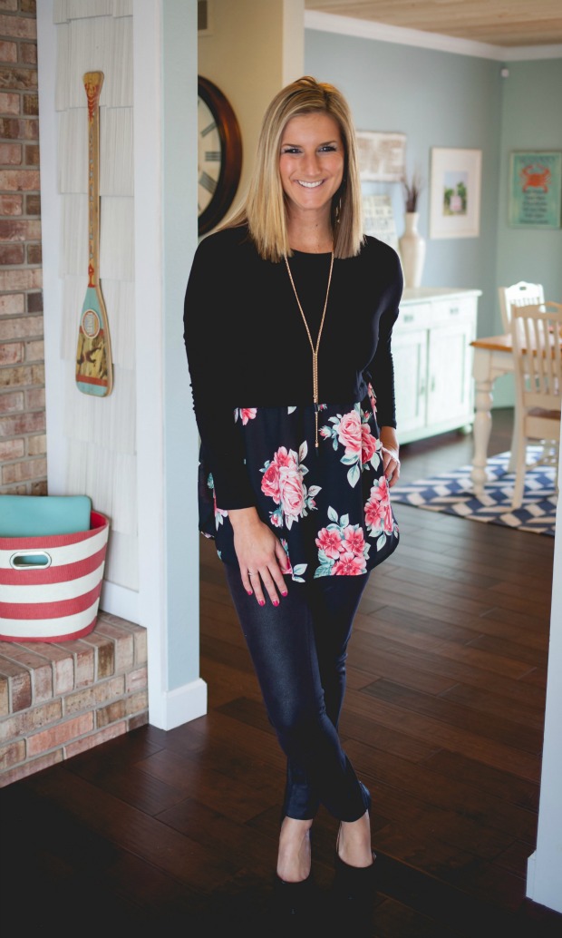 I knew I had to have this baby when I laid my eyes on it. I love the flowy floral look and the fabric is so soft and comfortable. I wore this pretty little thing last night here in Cali [the proof is on Instagram and Facebook] and received several compliments. Fortunately nobody tried to pick any flowers from my stomach but I would have let them try. A few other similar favorites can be found