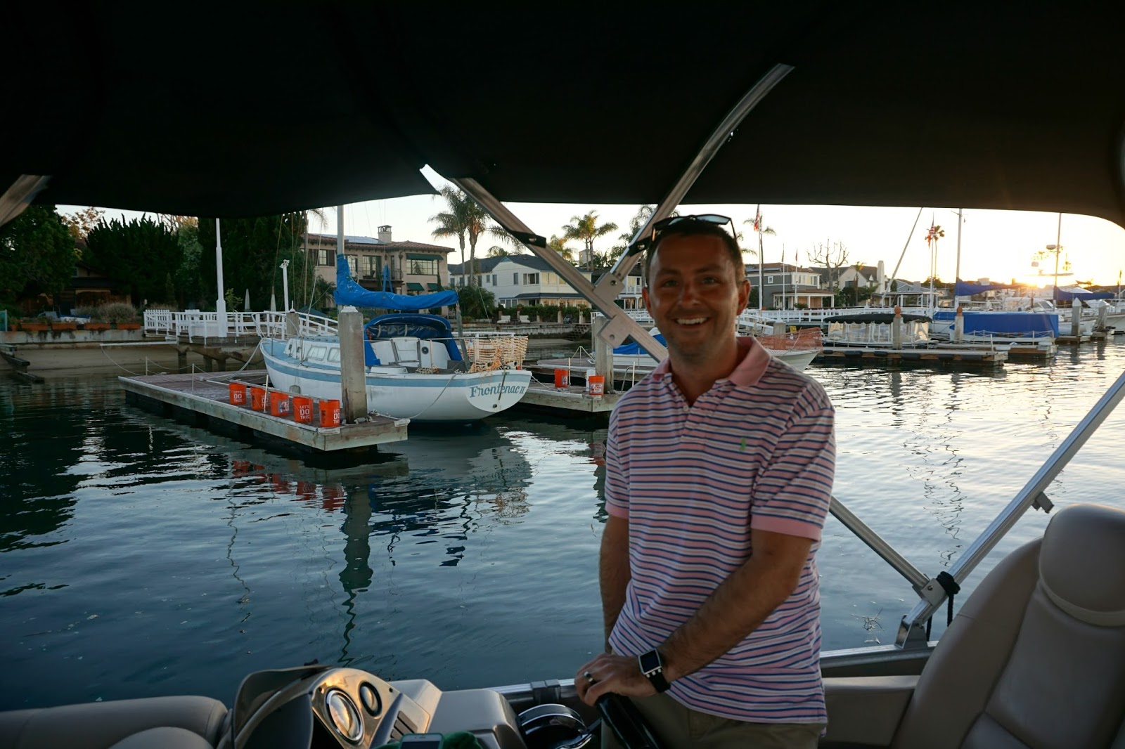 The next item up on the list? A two hour pontoon ride on Newport Bay. Here’s a really smart travel tip – a month or so before leaving for whatever destination you may be going to, sign up for either LivingSocial or Groupon in that area. I did this for the San Diego area and we ended up buying 3 different deals prior to our departure, one of which being this awesome pontoon rental that saved us over $150. Holler. The boat was awesome, the scenery was more awesome, and the people who joined us on the boat were the most awesome of all. Thankfully several of my Pollinate co-workers live right in Newport so we said “allllll aboard” and there we were. Sailing away into the sunset, drinks in hand, smiles on our faces, and dance moves all around.