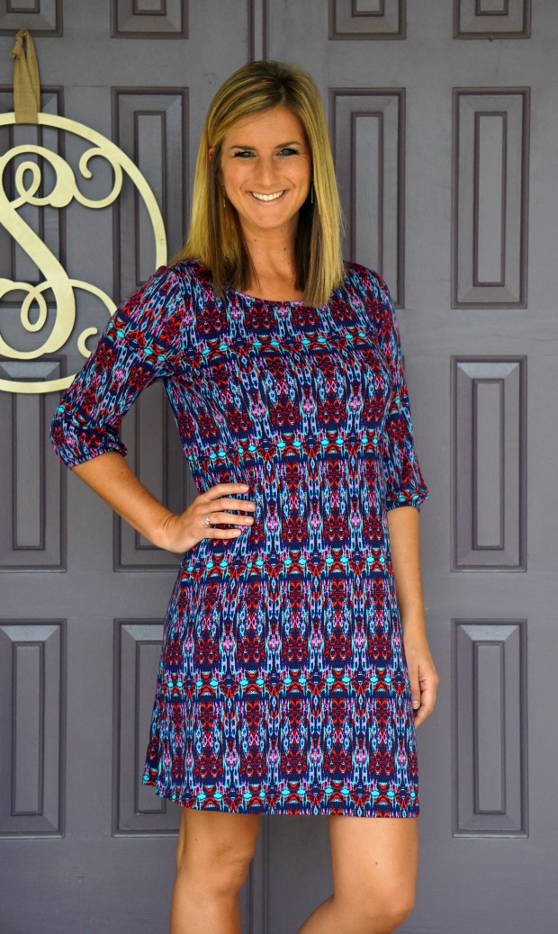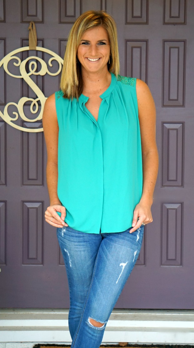 Stitch Fix reveal home front. I had every intention of taking photos last Sunday until I stayed up until 4 am the night before and the thought of putting make-up on sounded as appealing as giving a cat a bath. So, no cat baths or make-up for me. Fast forward to this weekend and hooray, I was ready to face the camera. This fix was so/so for me. I had asked for a mix of work appropriate dresses or skirts and some fun tops to go out in. I also requested jewel tone clothing because I’m learning more and more I’m loving all things emerald green, royal blue, purple, etc. My stylist sent exactly what I asked for because she is my hero, however a few of the items I was questionable on. I might as well shut up and let you judge for yourself – because I have gotten in the spirit of giving away a $50