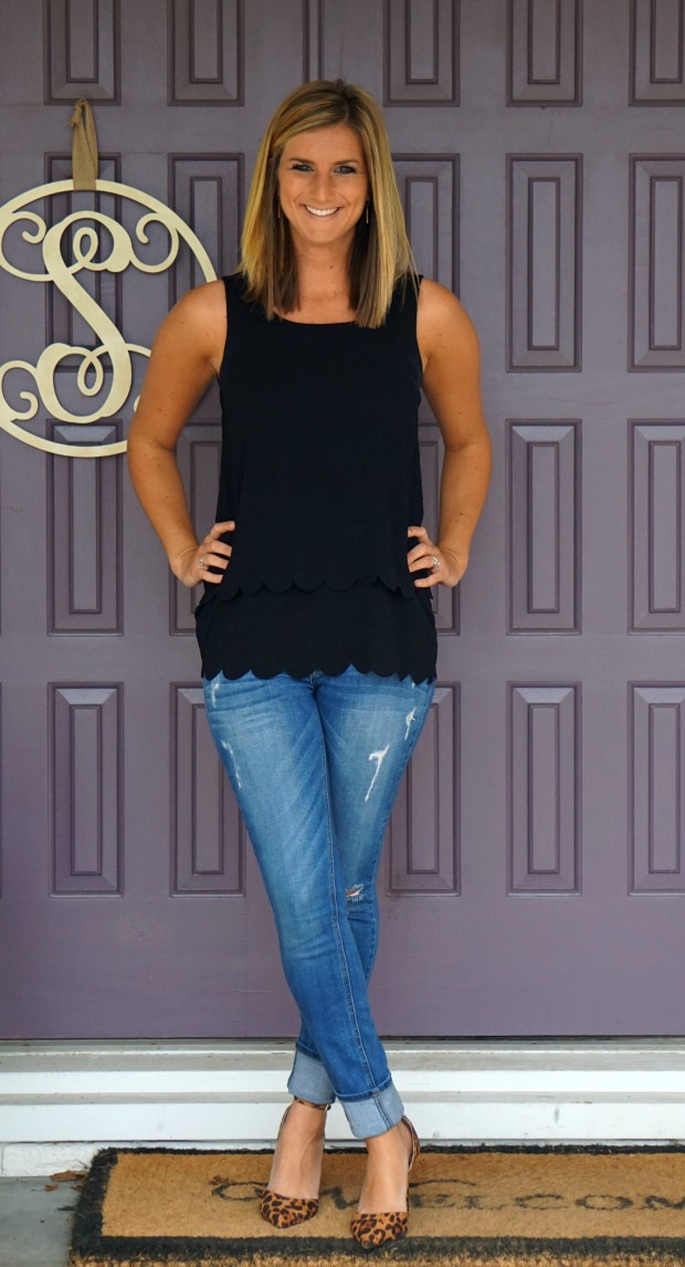 The minute I pulled this baby out of the box I knew it was a keeper. Put a scallop on anything and I’m sold. The open back also had my all heart eyes – I wore this pretty little thing in Chicago with black pants and some