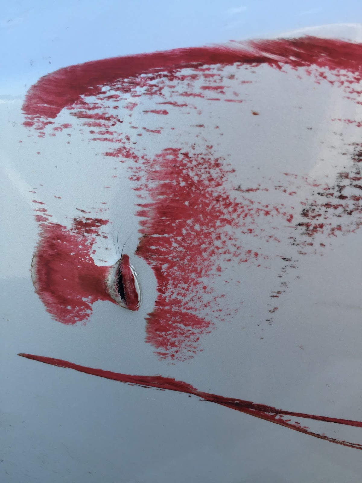 Turns out my shoes were safe and sound at home and while the red does dress up the front of my car nicely, the hole that is now there isn’t super cute.