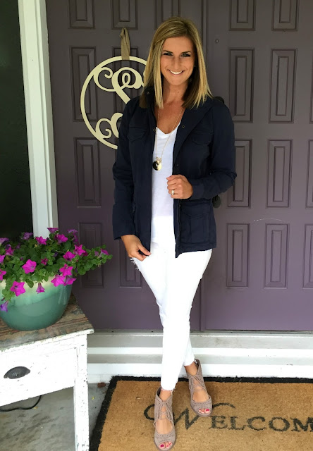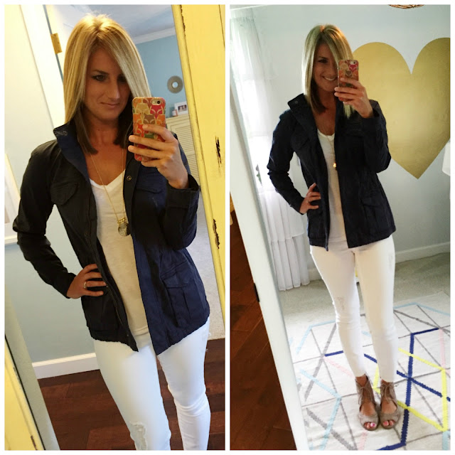 I just ordered this navy utility jacket and I am in love with this! The structure is awesome and I love throwing it on for cooler evenings in the spring, summer and fall! Definitely a new staple piece in the wardrobe!