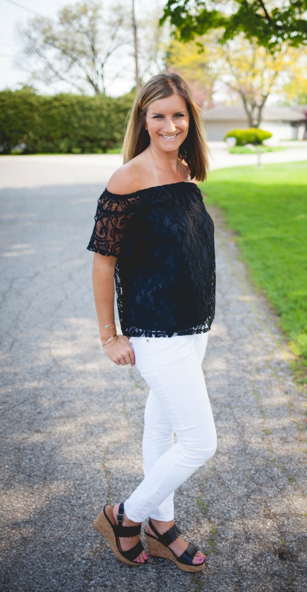 I’m also LOVING the off the shoulder trend that’s been popping up everywhere recently. I love the fun, flirty vibe that the “cold shoulder” look gives off and the soft romantic lace paired with it. Super girly and super chic.