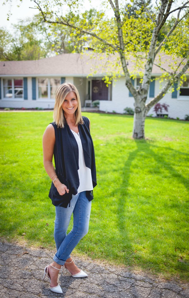 While I’m all about that color when it comes to my wardrobe, I am also very much about classic black and white. Two colors that you can never go wrong with, always look good on and can be mixed/matched just about any which way. I’ve recently incorporated a few more black and white pieces into my closet and thought I would share how I’m styling them for the summer months. I love taking dressier items [ie: heels] and dressing them down with a cute pair of distressed jeans and cool casual top…