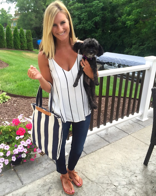 grommet tank [wearing a small] // striped tote [some color options 50% off!] // cropped jeans [currently 40% off! so comfortable and have a nice stretch, wearing a size 26 – if you teter between sizes, size down] // tassel sandals