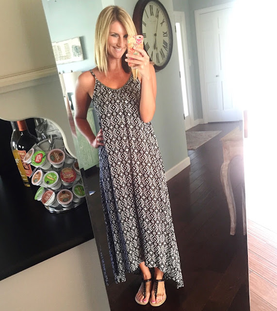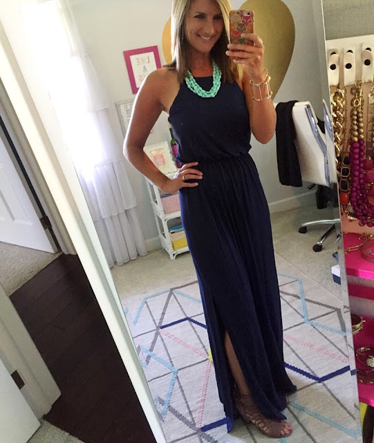 maxi dress [wearing size small, color peacoat – available in 8 colors/prints, a few more options 40% off here] // leather sandals [currently 30% off, my favorite to wear!] // necklace