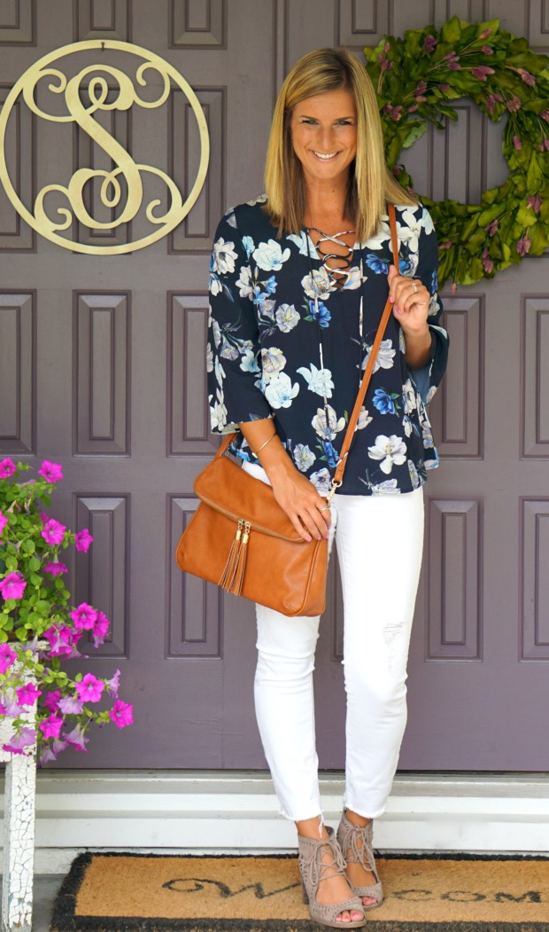 Just yes to all of the yes’s for this top – every last one of them. I couldn’t love the pattern, the lace up front or the lightweight fabric more. I wore this out to dinner the night I received it and I can see a lot more wearing of it in my future. Ladies, you need this top in your fix!