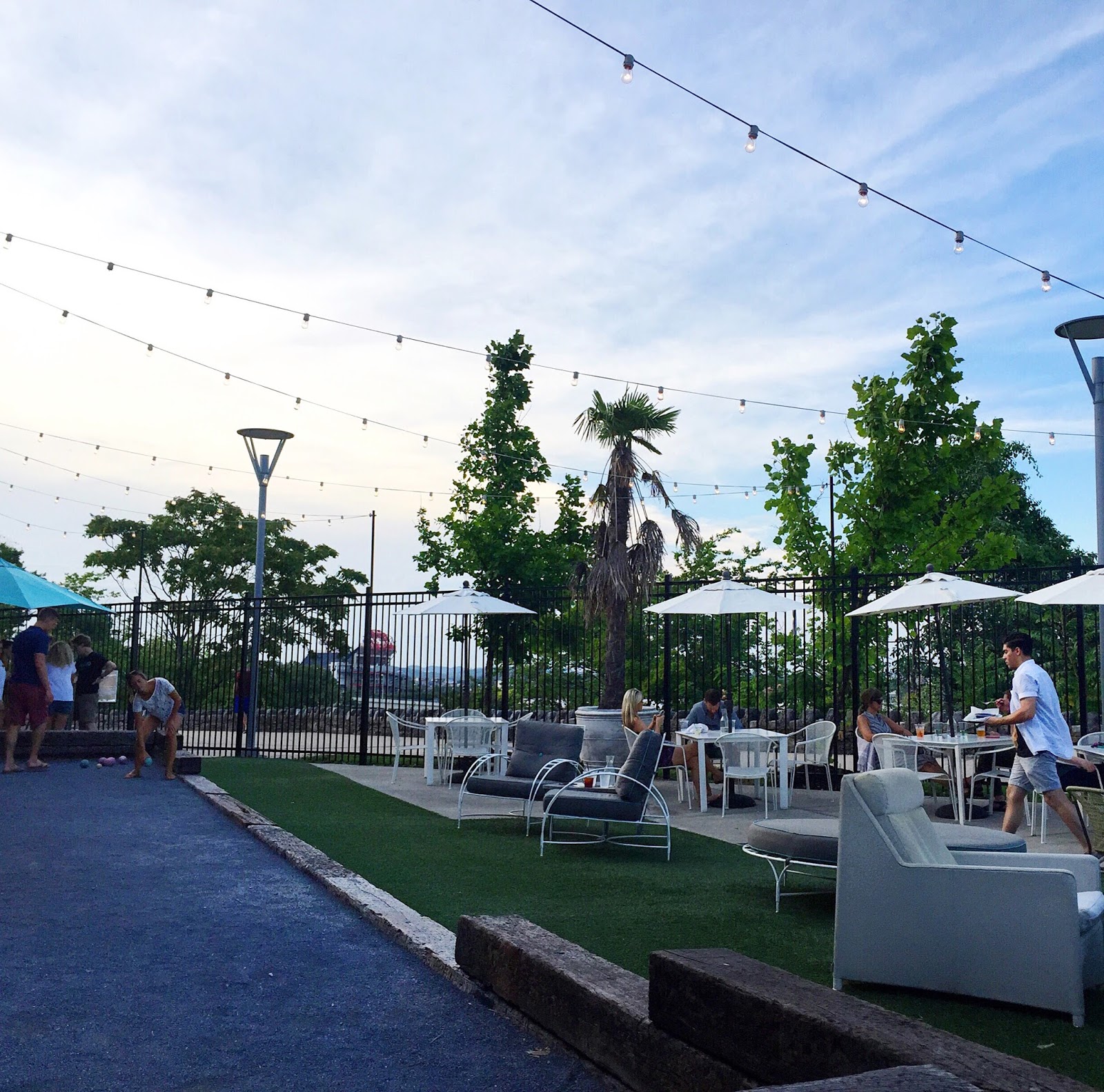 That evening we did what every party of 4 in their 30’s does – we headed off to Pinewood Social [seriously my new favorite place in Nashville] and busted out some cards alongside some delicious cocktails. Between the awesome outdoor space, in ground pool, vintage bowling lanes, airstream bar, bocce ball courts, and the list goes on – this place was legit.