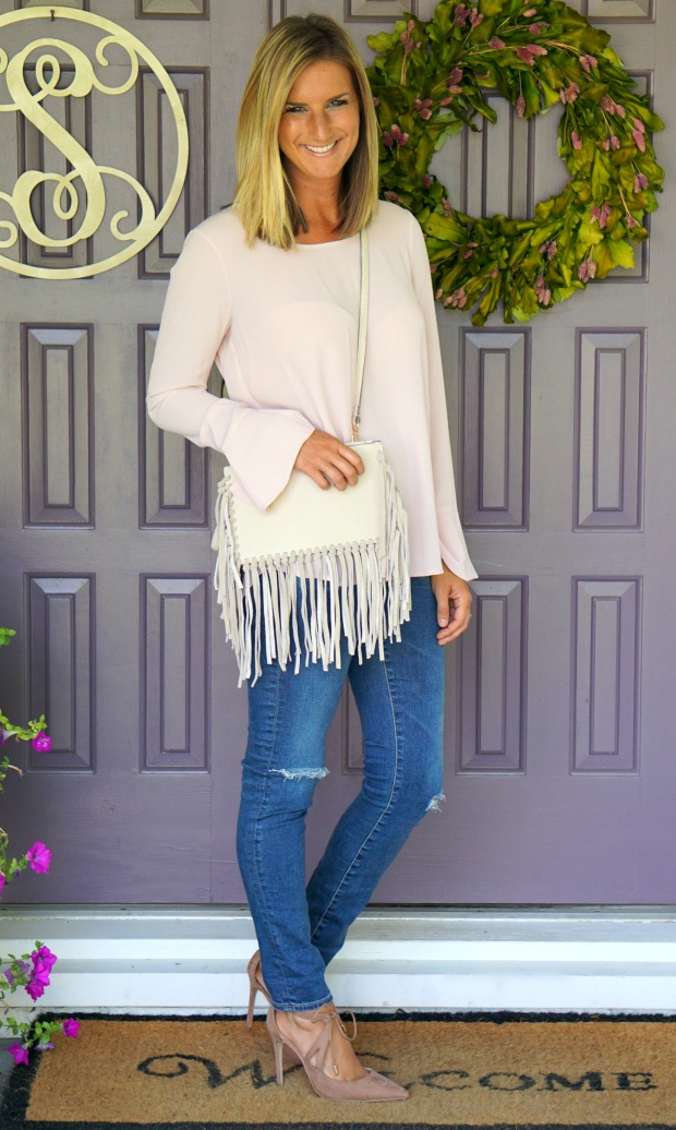 these shoes lately!] but this seemed like a heck of a lot of fringe in a small amount of space. I don’t love accessories that overwhelm the outfit and I felt like this clutch did just that. Sorry but back it goes. On the bright side, it does look kinda adorable with