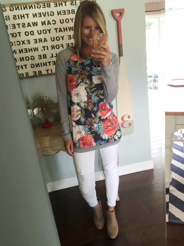 floral stephanie tunic sweater – consider sizing up one, wearing a medium. so cute!