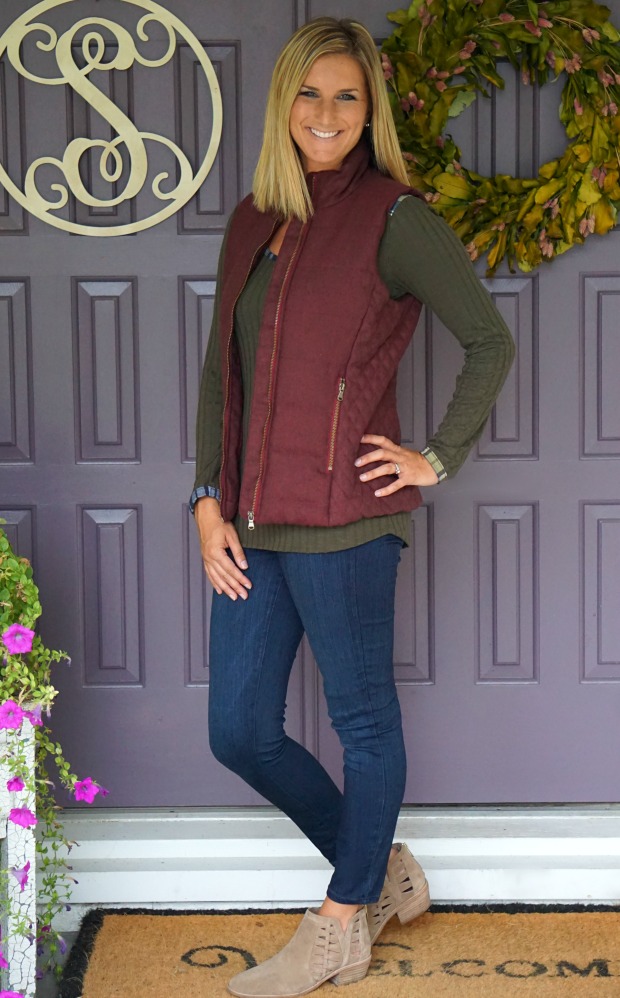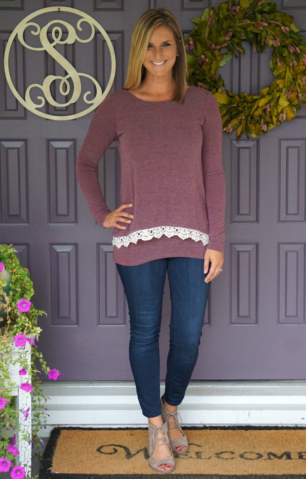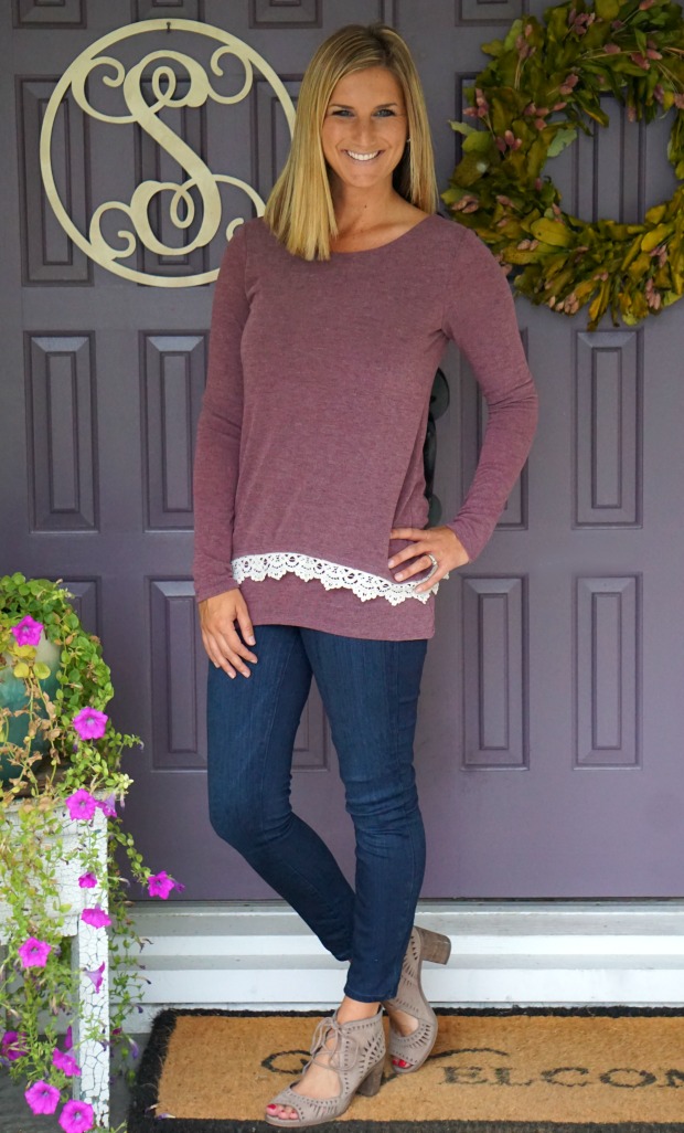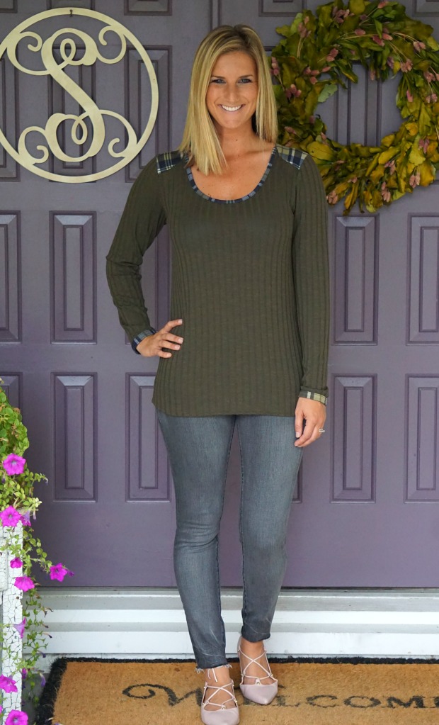 When I pulled this out of the box I thought “okay cool, a plain shirt – sending back” and then I tried it on and I knew instantly I would never part with this ribbed shirt of softness. I love the plaid detail on the shoulders and edging [if that’s what it’s called, I have no clue]. It’s the perfect top alone or used for layering [which you’ll see below]. Add this to your want list, you won’t regret it!