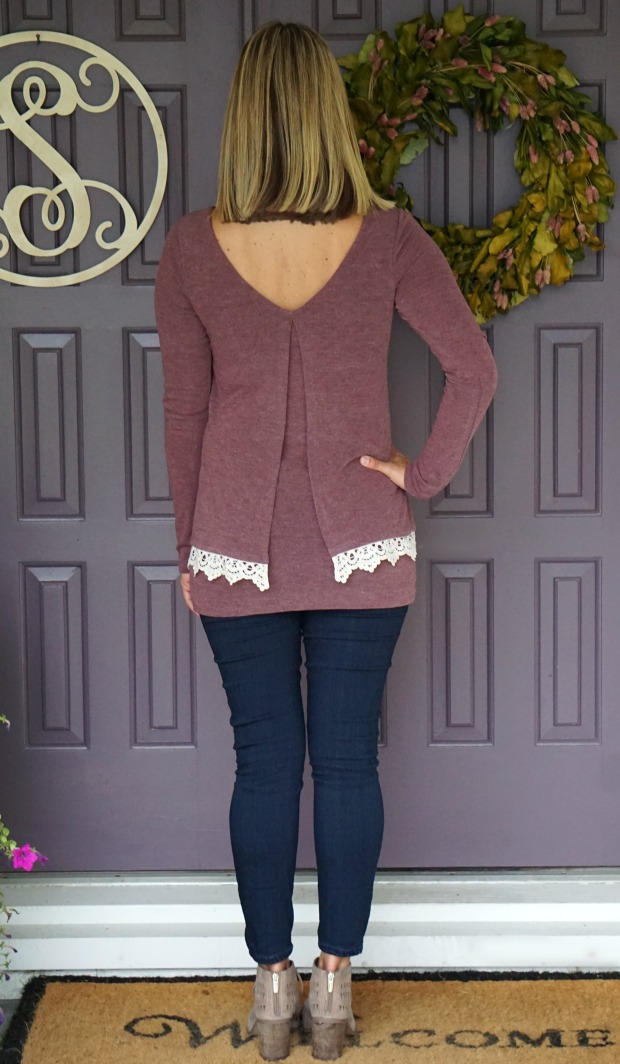 This sweater tricked me. I thought the front was the back and the back was the front and blah blah blah. For whatever reason however, it feels and looks a little grandma-ish to me. Albeit a cool grandma, but a grandma none the less. I don’t know if it’s the mauve color or doily looking lace but I decided to return it. I do think this could totally work on other people, it just doesn’t scream me.