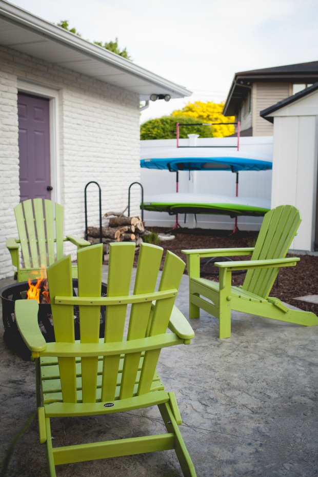 We were fortunate enough to have enough space to pour a second area of concrete that houses additional seating. For this area we wanted something a little more laid back so we went back to our roots and placed a traditional fire pit surrounded by these amazing POLYWOOD Adirondack chairs. We love hanging out over on this area and especially love that we have enough seats for people to spread out and have different places to hang.