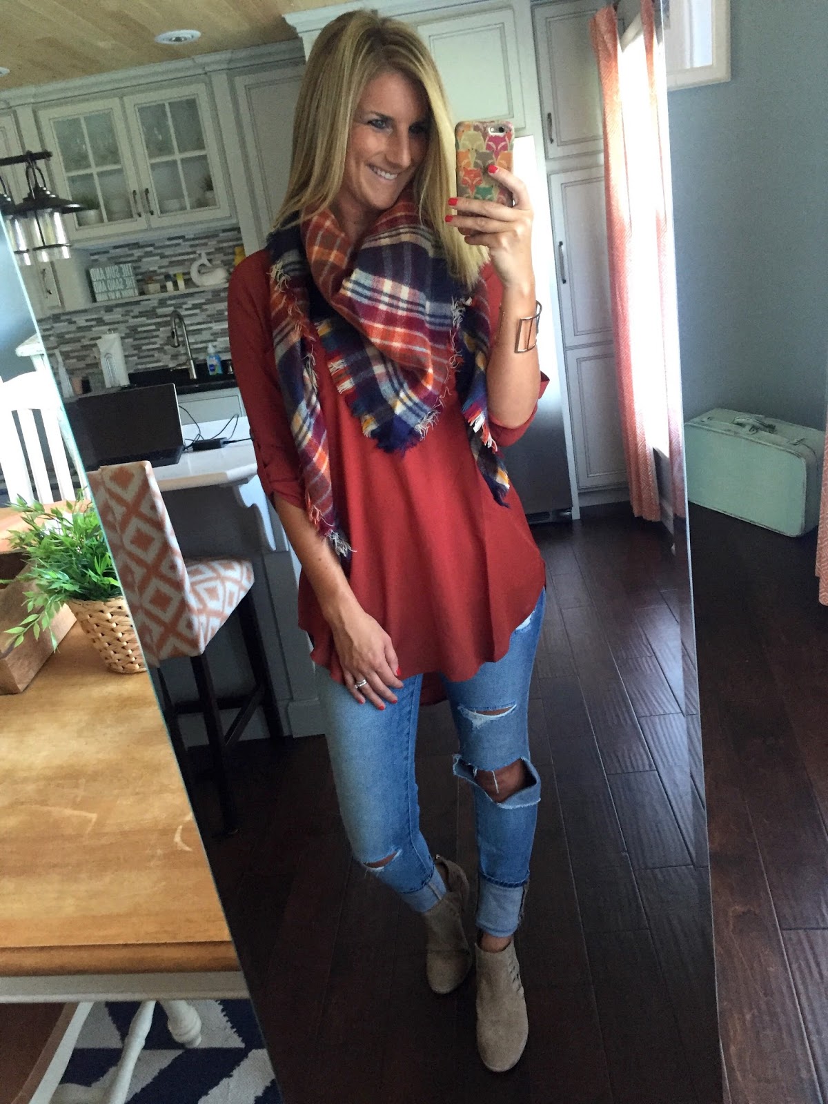 perfect scarf for fall [see above in first photo collage how cute it is under vests as well!] You can’t go wrong with these colors with your other fall wardrobe items. Grab that pumpkin spice latte and go to town girlfriend.