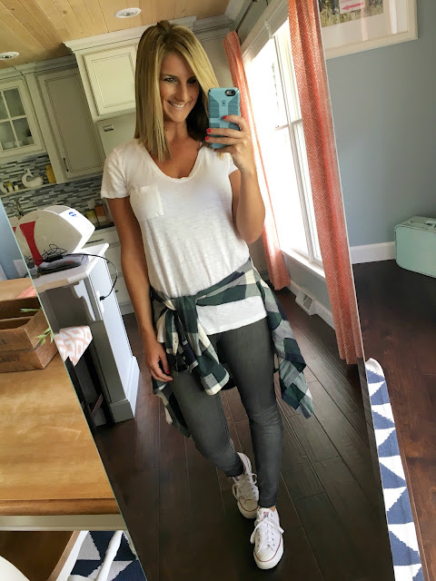 this tee in five colors and it has never failed me. I love that it is not too tight and not too loose. Perfect alone or under any cardigan and jacket. So comfy! I do find this to be true to size, however if you fall in between sizes you may want to size down. You can’t go wrong with a great basic!