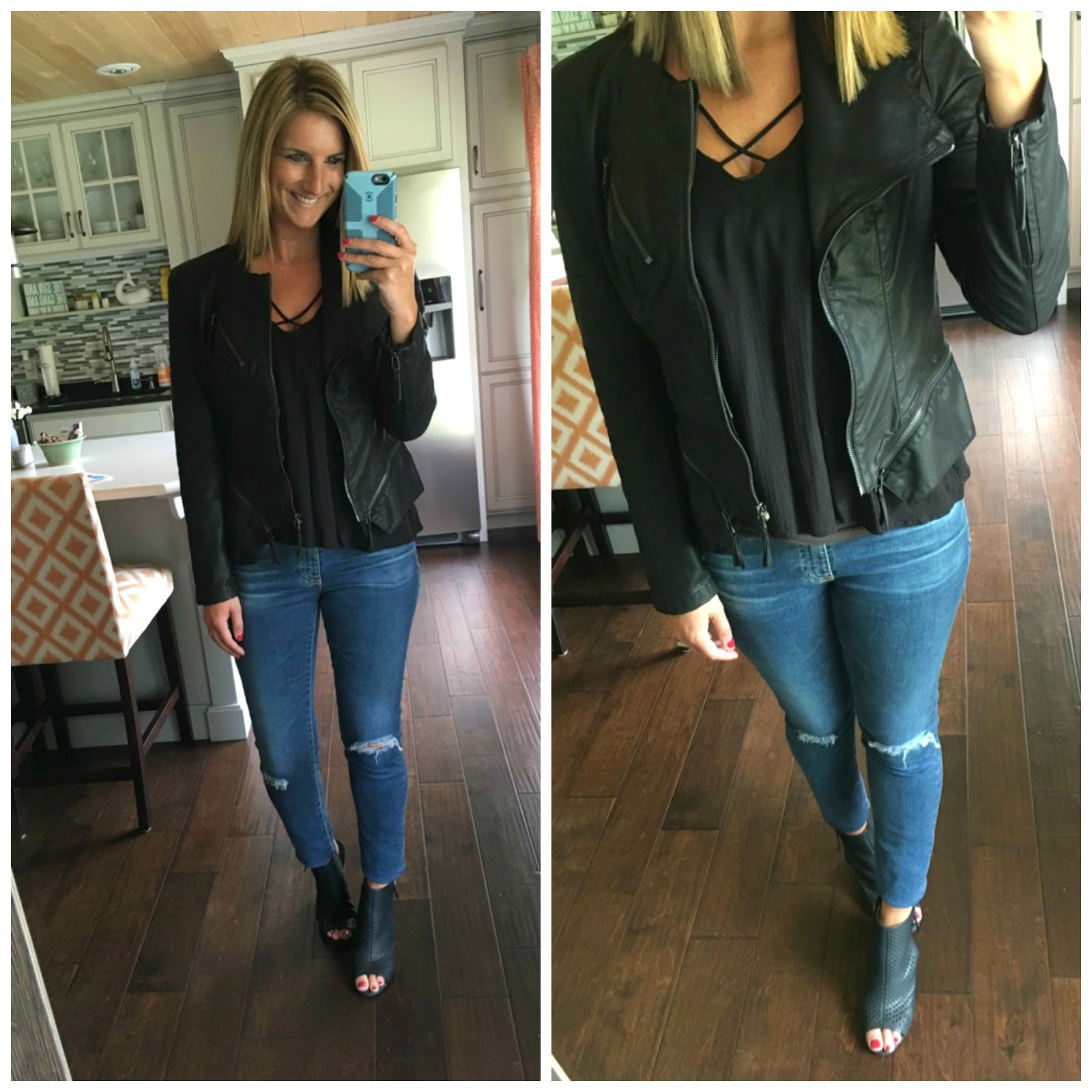 vegan leather jacket [use code ADAY for 20% off! true to size, wearing in small, the best jacket ever!] //
