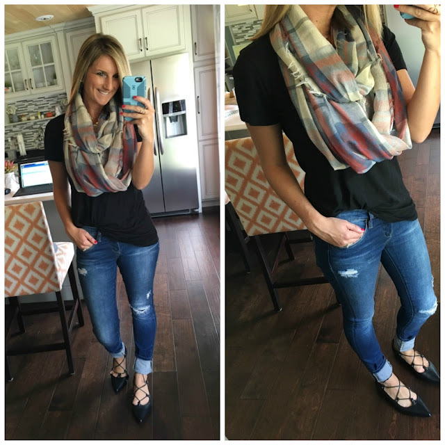 Jeans [size down if in between, these are incredibly soft! more sizes here] // Shoes [20% off, my fav. flat ever! so comfy! wearing in black leather] // scarf [under $20, wearing in ivory multi!]