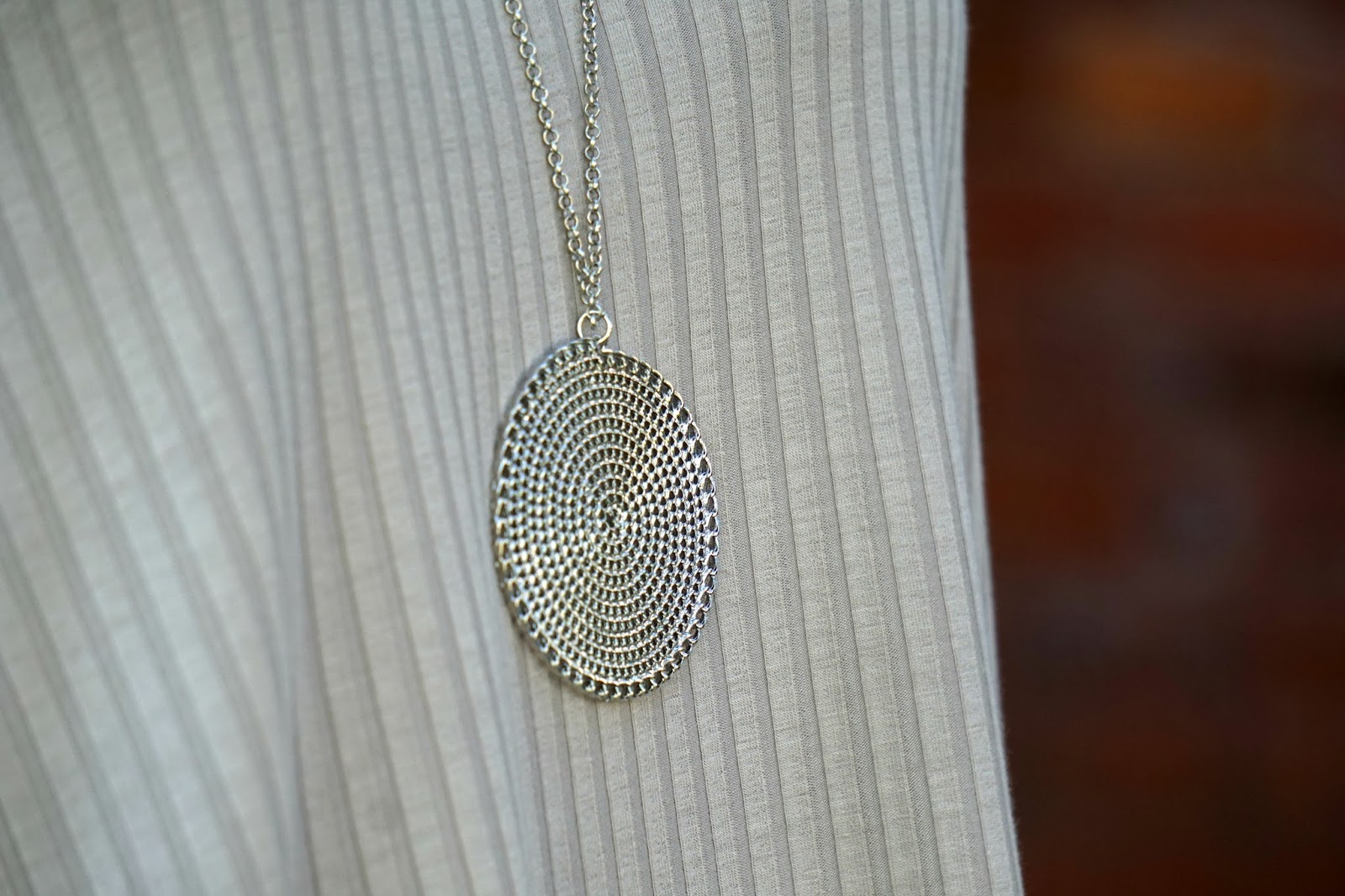 Don’t worry, I only have like 27 more photos in this post. You know, in case you weren’t aware of what the items looked like by now ;). To pull the look together, we added this long silver circle necklace that looks awesome with either color of tops. As an added bonus it comes with a pair of coordinating earrings so cha-ching, you’ve got yourself a complete outfit ladies!