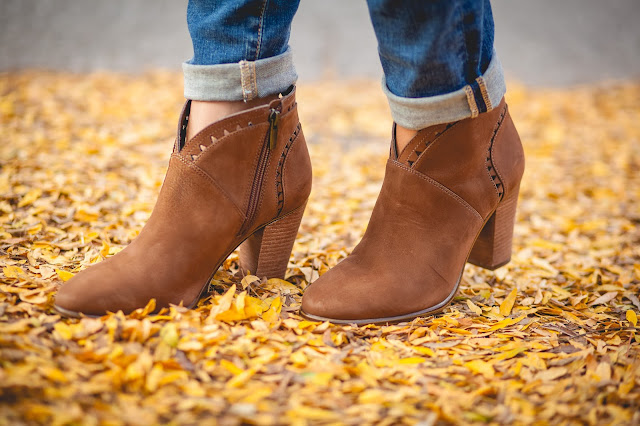 Today I thought it would be fun to share a few different ways to wear and style booties this season. Some people can be intimidated by booties but girlfriend, embrace em’. Find a pair that’s comfortable, cute and durable and wear the heck out of them. Jeans, leggings, tights, bare legs, your options are unlimited. Here’s 3 easy to achieve looks…
