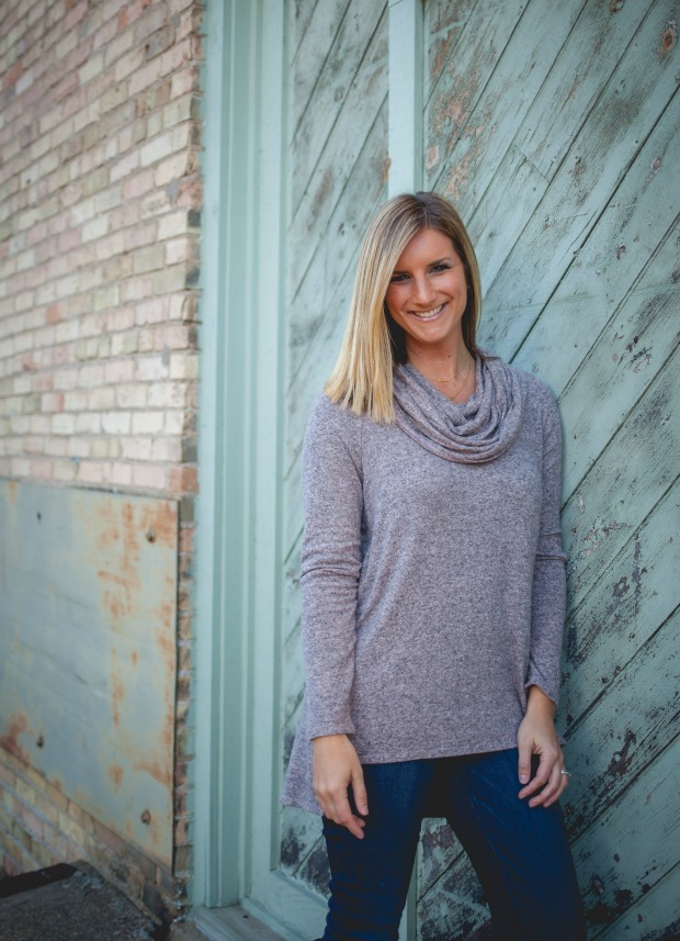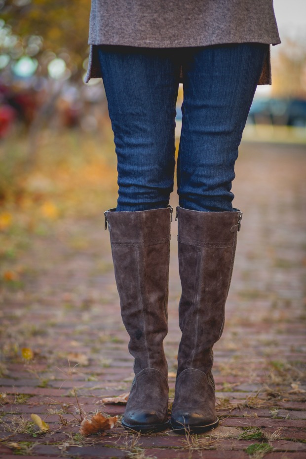 Back to the tunic though – while I’m wearing it in the blush/heather grey color, it’s available in 6 other equally as awesome colors. Have I mentioned yet that it can be worn as a cowl neck OR as an off the shoulder sweater? I know, it’s similar to how I felt when I woke up to snowflakes falling from the sky Saturday morning. To complete the look [although lets be honest, I’d be totally content in this tunic and tunic only], I paired it with jeans with plenty of stretch [because things like Thanksgiving] and some of the most comfortable yet stylish riding boots I’ve ever owned.