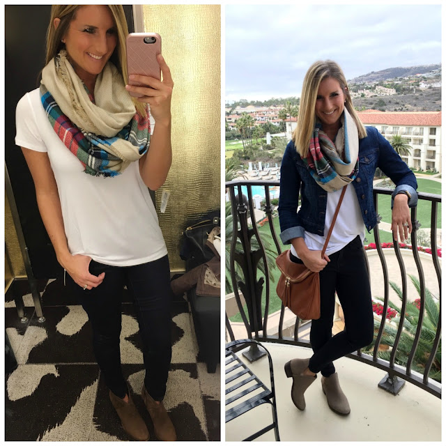 6. Plaid Infinity Scarf [under $10] + BP Crossbody Bag [available in several colors] + Nike No Show Socks