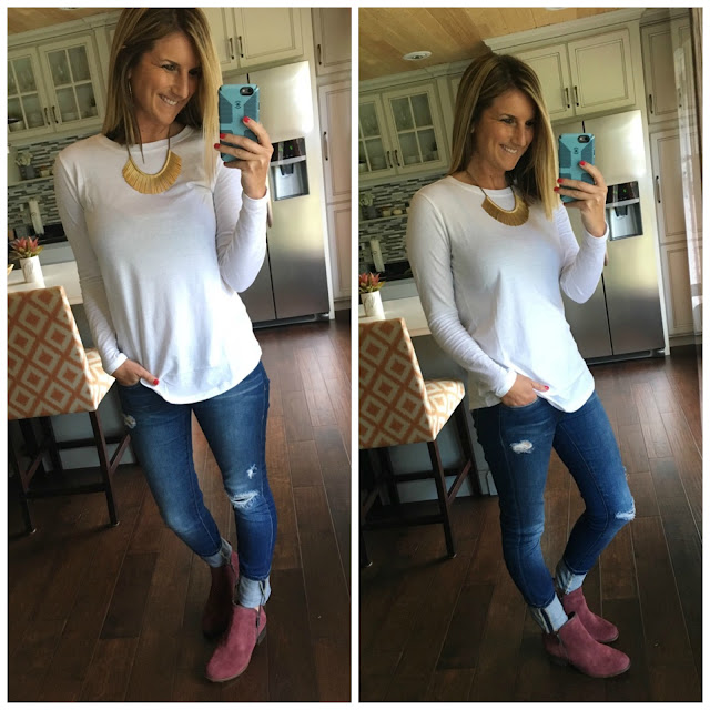 8. BP Crewneck Tee + Blanknyc Distressed Skinny Jeans + Lucky Booties [15% off, not available before Christmas] + Nike No Show Socks + Necklace [not available before Christmas]