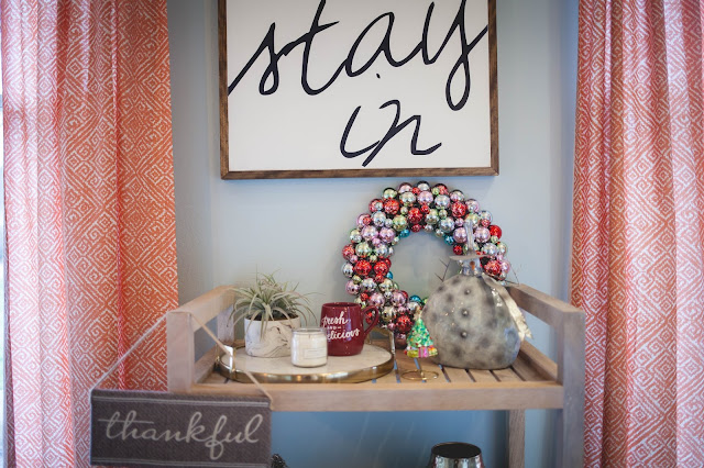 While I will share our Christmas festivities soon, I wanted to bring you this quick post on how you, yes you, can transform your home from Christmas to New Years in a matter of minutes with the help of sparkles [lots of sparkles] and all things gold and silver from Horchow. You may recall in our Christmas home tour how I turned to Horchow for our Christmas decor and because I was so pleased with the products [and because the items ship ridiculously fast and my planning ahead skills are that of a cat] I quick placed an order for some NYE touches to scatter around the house. The good news is that you can order them and have them in time to party too! Here’s what I did, starting with the bar cart [shown below first as “before”]