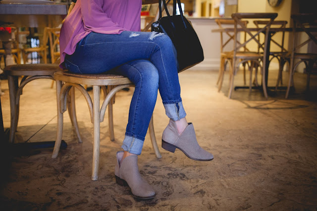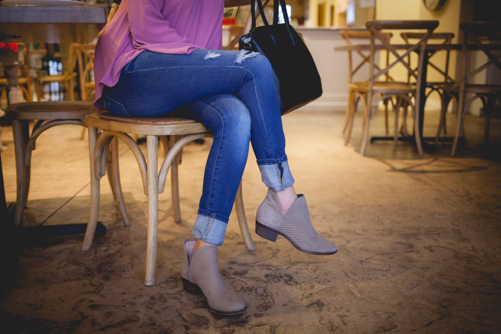 top [true to size, wearing in small] // jeans [size down if in between // booties [true to size, wearing in brindle leather // purse