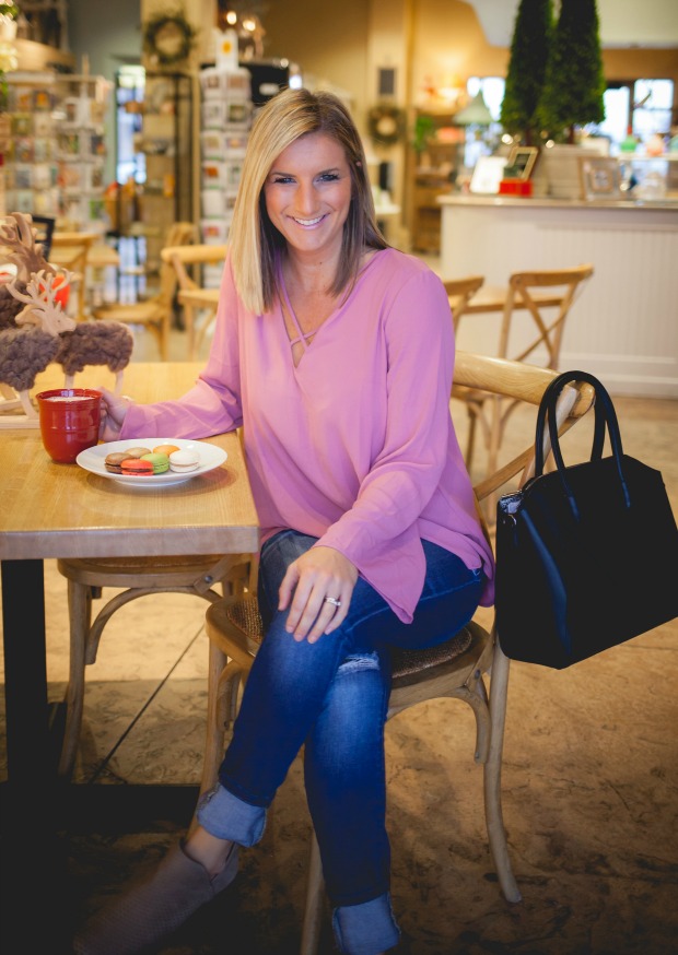 This cross front long sleeve blouse is the perfect go-to shirt for your casual date out or night in at home. I love that it gives a little bit of sex appeal without revealing too much. Leave a little bit of mystery for later ladies 😉 Available in several different color options [the black and white floral is my favorite] and plenty of flow you can dress this up with your favorite black jeans and heels or make things a little less formal with distressed jeans and booties like I did.