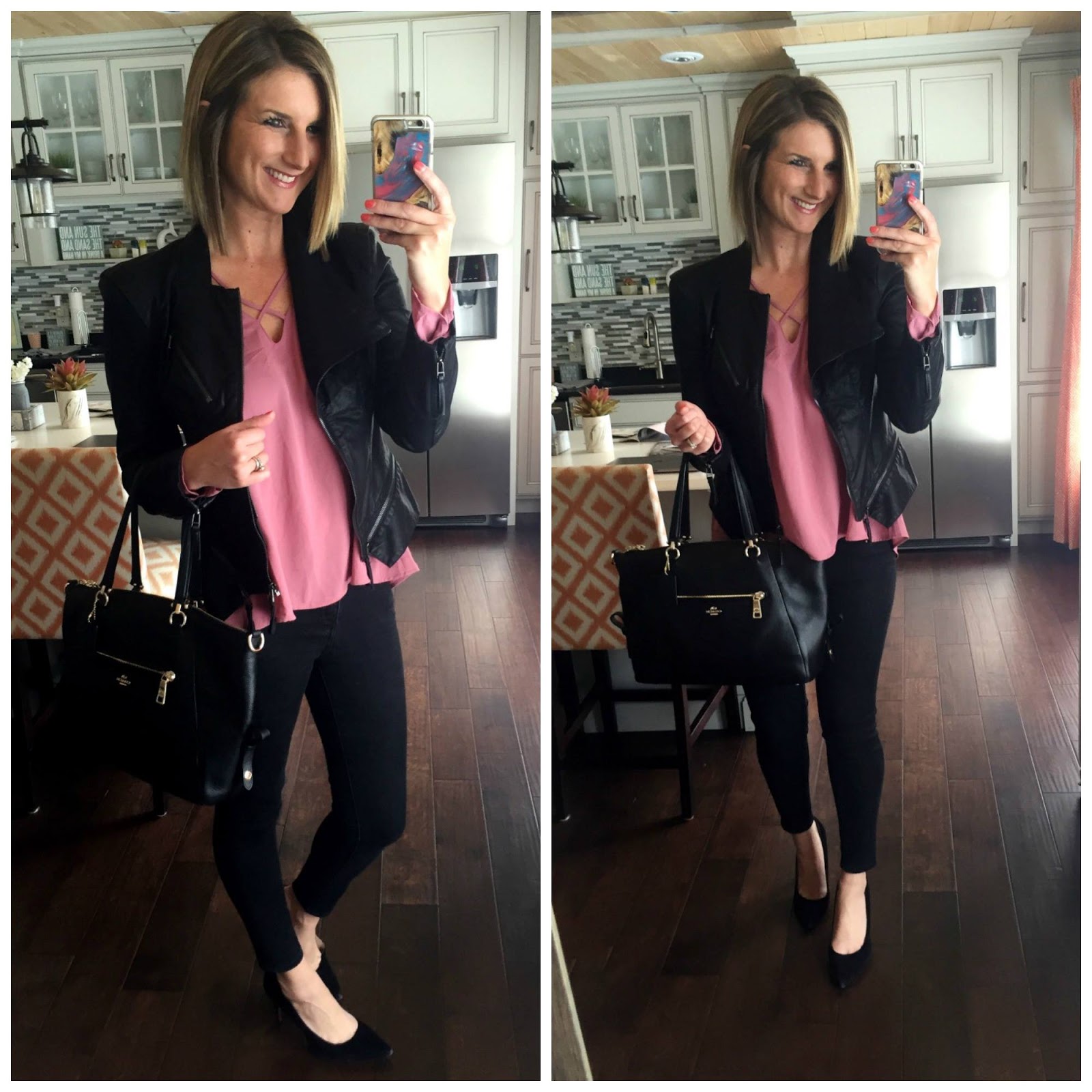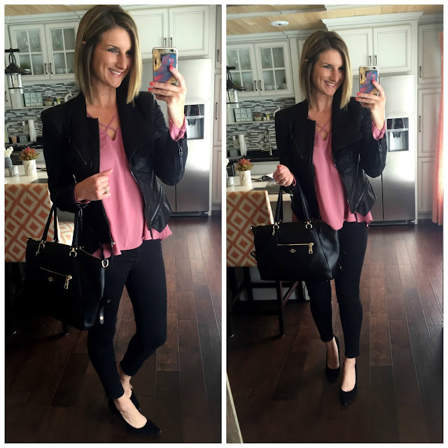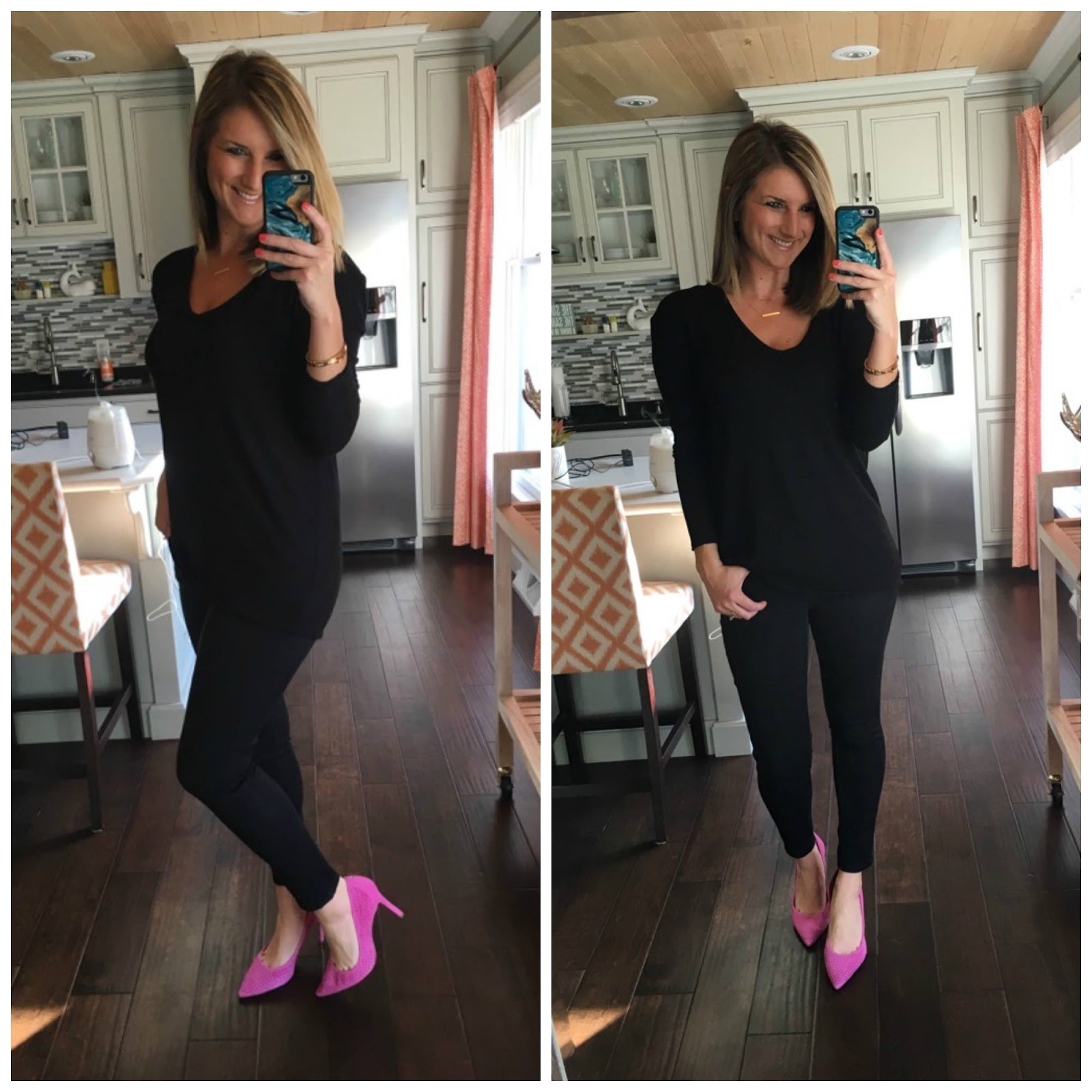Sweater[size down, wearing in XS] // Black jeans [true to size] // Heels[so comfy, true to size, wearing in hot pink]