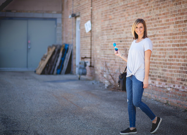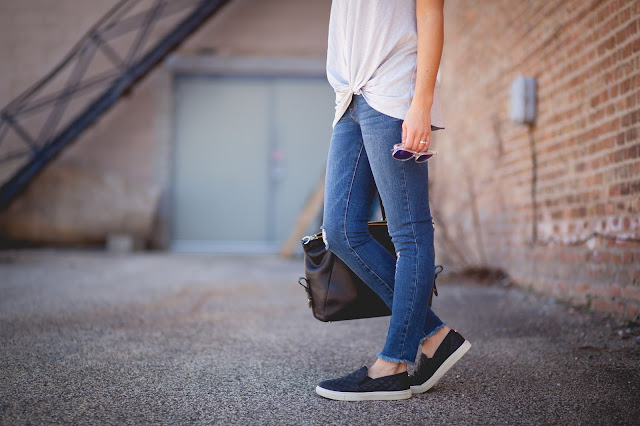 tee [size down if in between, wearing in XS] // jeans [true to size, under $50!] // slip-on tennis shoes [size up .5 size!]