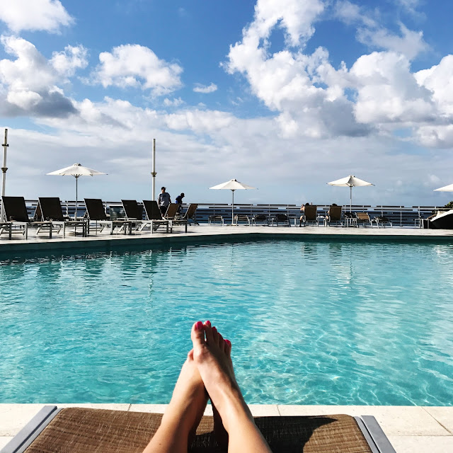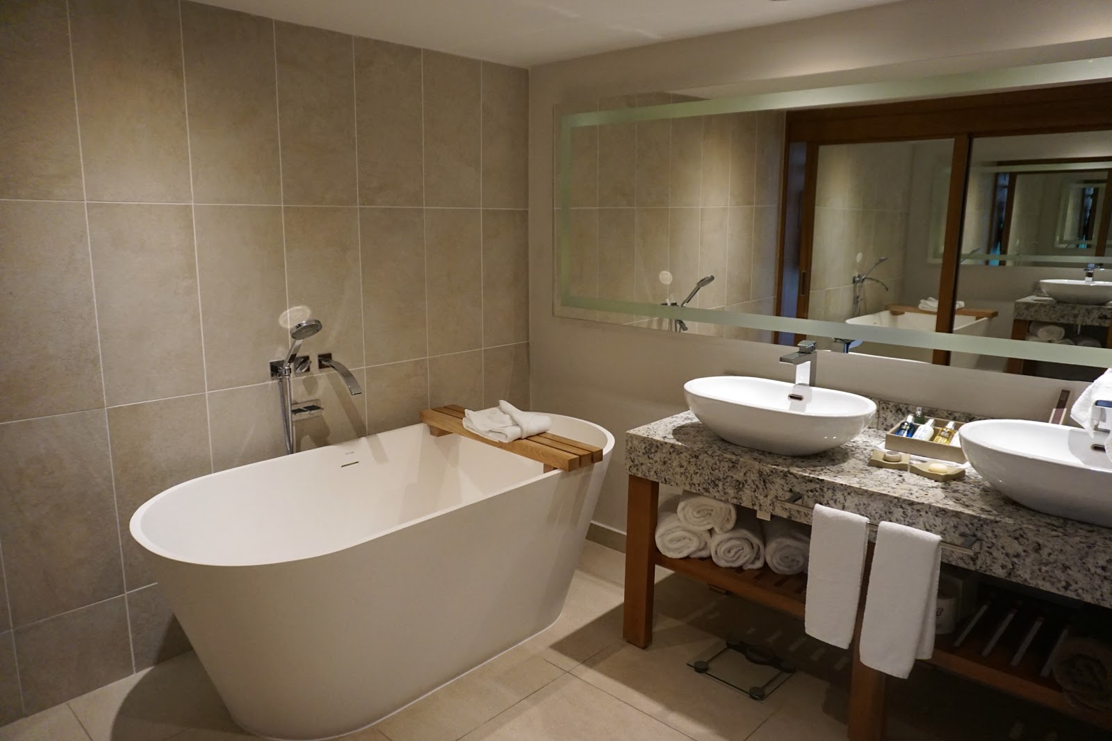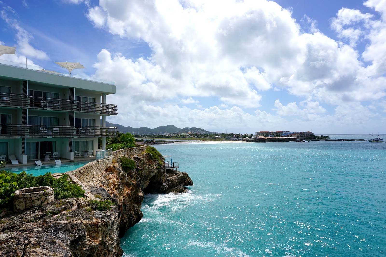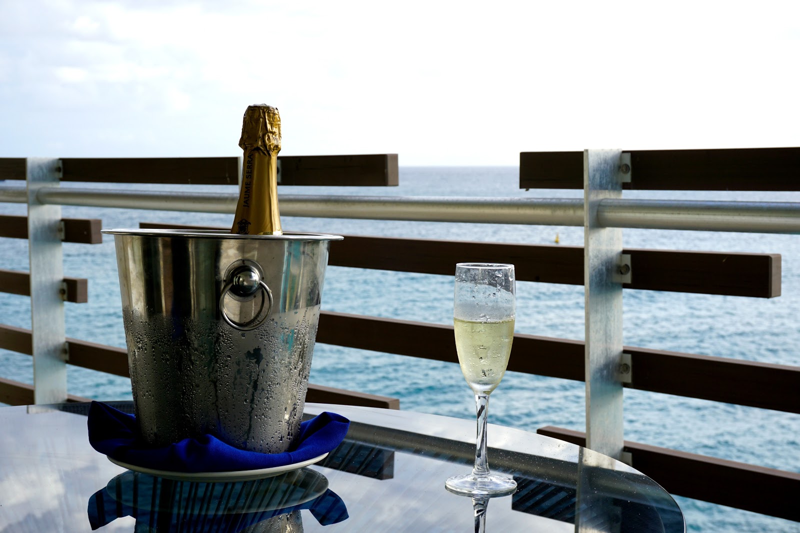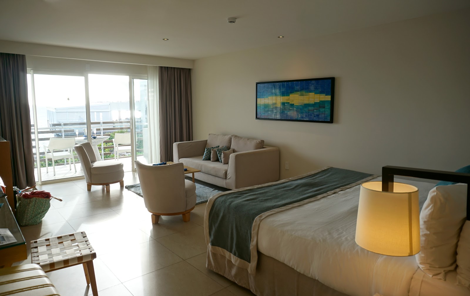 Like I mentioned, we flew into the main airport (SXM), were able to get through customs pretty quickly, and then walked out to the taxi area and were able to flag one down immediately to shuttle us the five minutes [if that] over to the resort. Sonesta Ocean Point shares a property with Sonesta Maho Beach Resort, which is the kid-friendly, older resort. Ocean Point is adults only and is much newer. Upon check-in, they provided us with a glass of champagne and cool towels and whisked us away to our room where cheese and fruit were waiting for us!