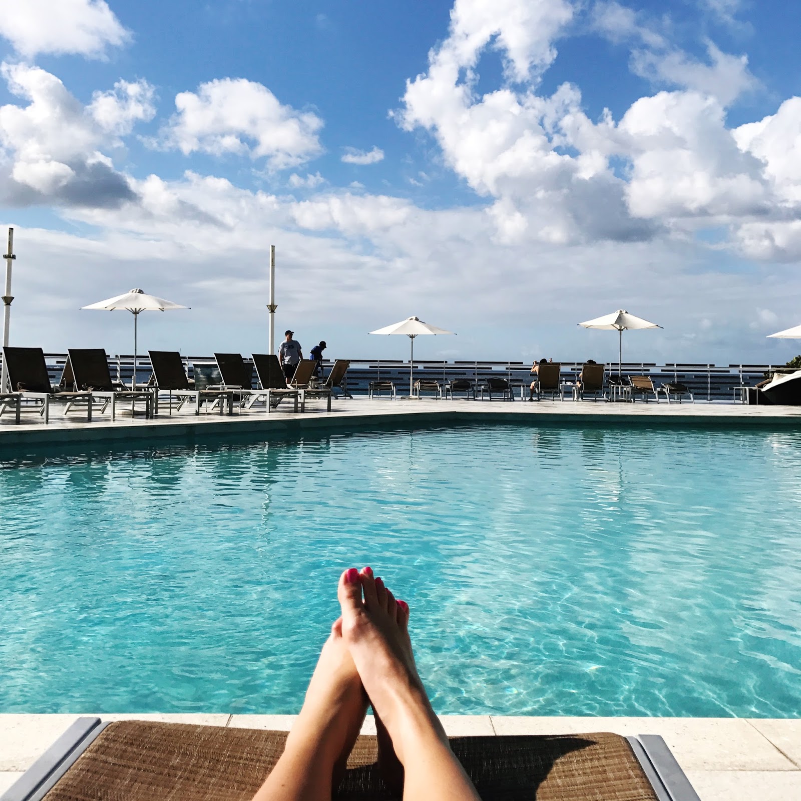 Being that the resort is all-inclusive, we did the majority of our eating at the resort itself. The nice feature of sharing a property with its sister resort meant that you were able to eat at any of the restaurants between the two buildings. For breakfast, you have the option of ordering room service [the pancakes with the whipped cream and coconut syrup were my jam] which we did often, along with a buffet style restaurant and a sit-down restaurant option. For lunch, you also had two different buffet option restaurants, a sit-down option and room service. For dinner they had a buffet option, a fine dining Italian option [we didn’t get to eat at this as it was booked every night], a Chinese restaurant [we didn’t like this at all, I would avoid!], a “lava rock” restaurant where you cook your meat on a hot plate at your table [this was fun and delicious!] and Azul, which is Ocean Point’s finer dining option with a menu that changes daily. We ate there three different nights for dinner and absolutely loved our meals every time. We really did like our food 99.9% of the time and would recommend it! I was surprised that there weren’t really any snack options during the day, so other than meals, we didn’t eat much [which let’s be real, worked to our benefit]. I loved the pizza at the buffet and then hated it when we got it for room service. Alcohol was on point and readily available at several bars on the property and also poolside.