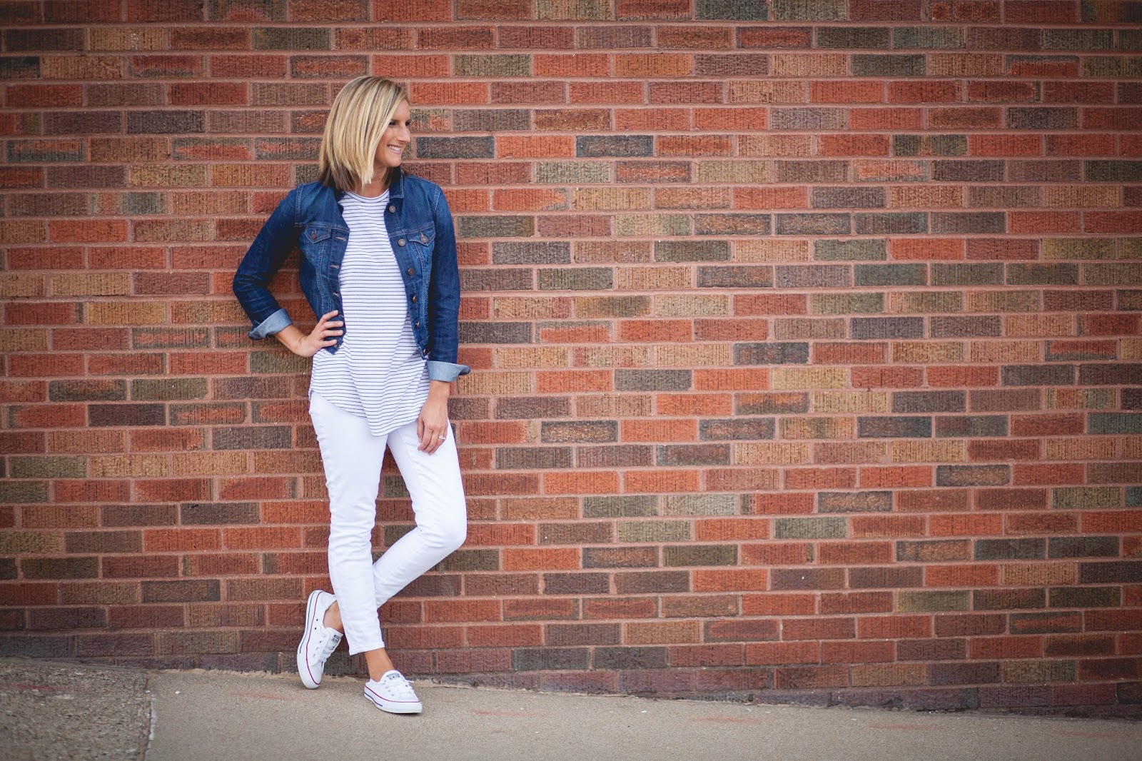 Last but certainly not least, the white jeans/white shoes look! I love this for spring and summer oh so much! So crisp and so clean! Again, the perfect daytime outfit which can easily transition to cooler evenings with a denim jacket!
