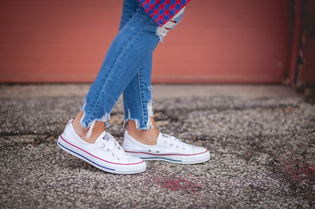 fun distressed jeans and of course, the Converse of all Converse and go!