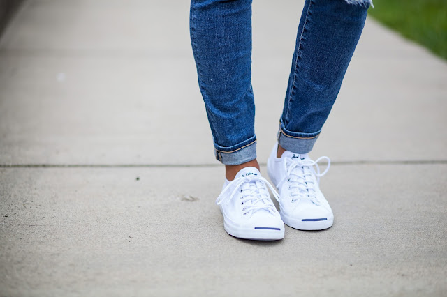 Next up, we have the “I’m going to the grocery store, my son’s baseball game or Saturday Farmers Market and I want to look like I tried just a little bit but not a ton” look. That’s a real style – look it up sometime 😉 For this I simply paired a graphic tee with distressed jeans, simple white tennies and dressed it up with this same ole