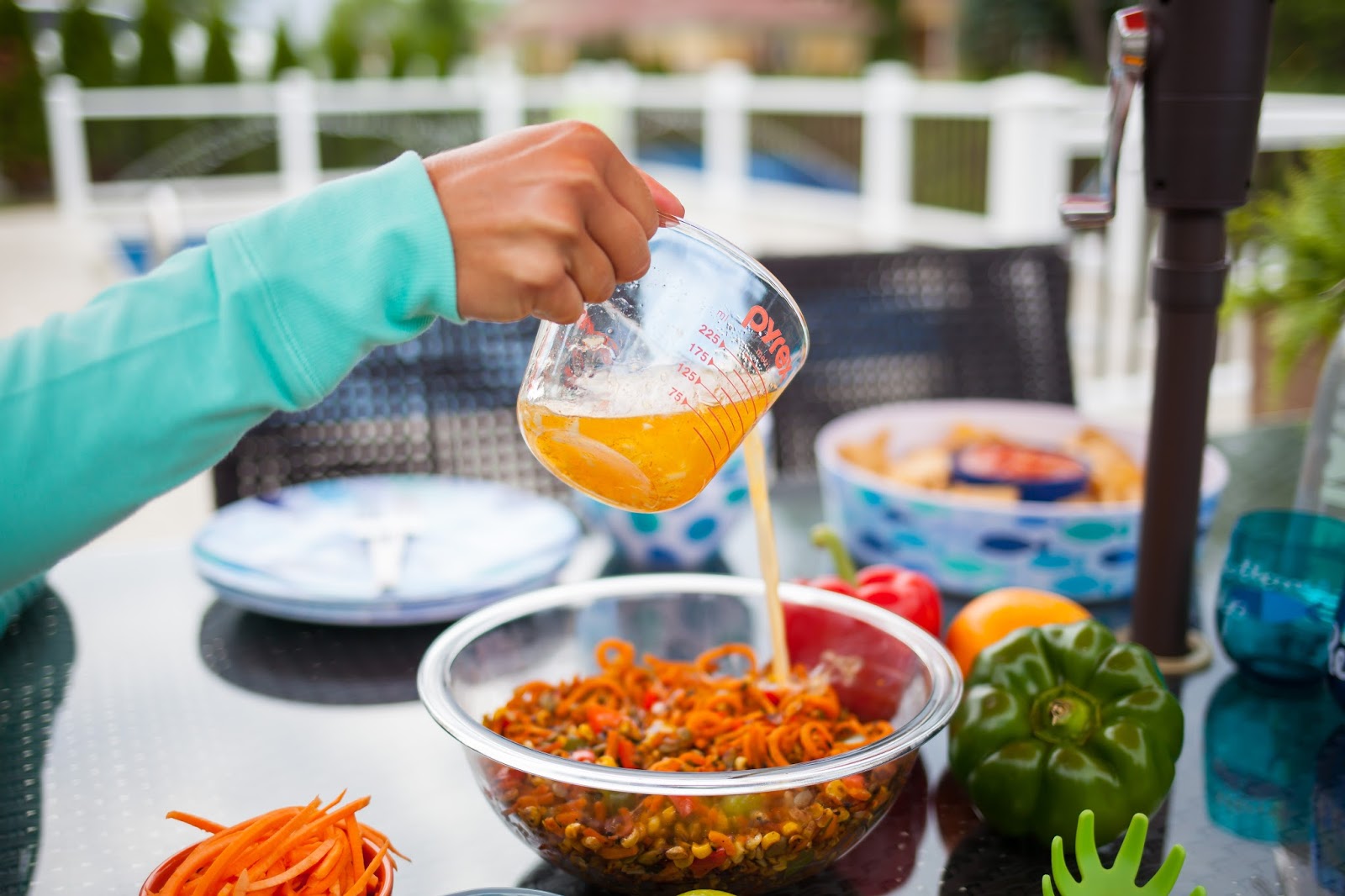 5. Mix together all ingredients of dressing and once complete, pour over your noodle salad. Top with any additional cilantro, squeeze of lime and anything else that brings your taste buds satisfaction! Enjoy!