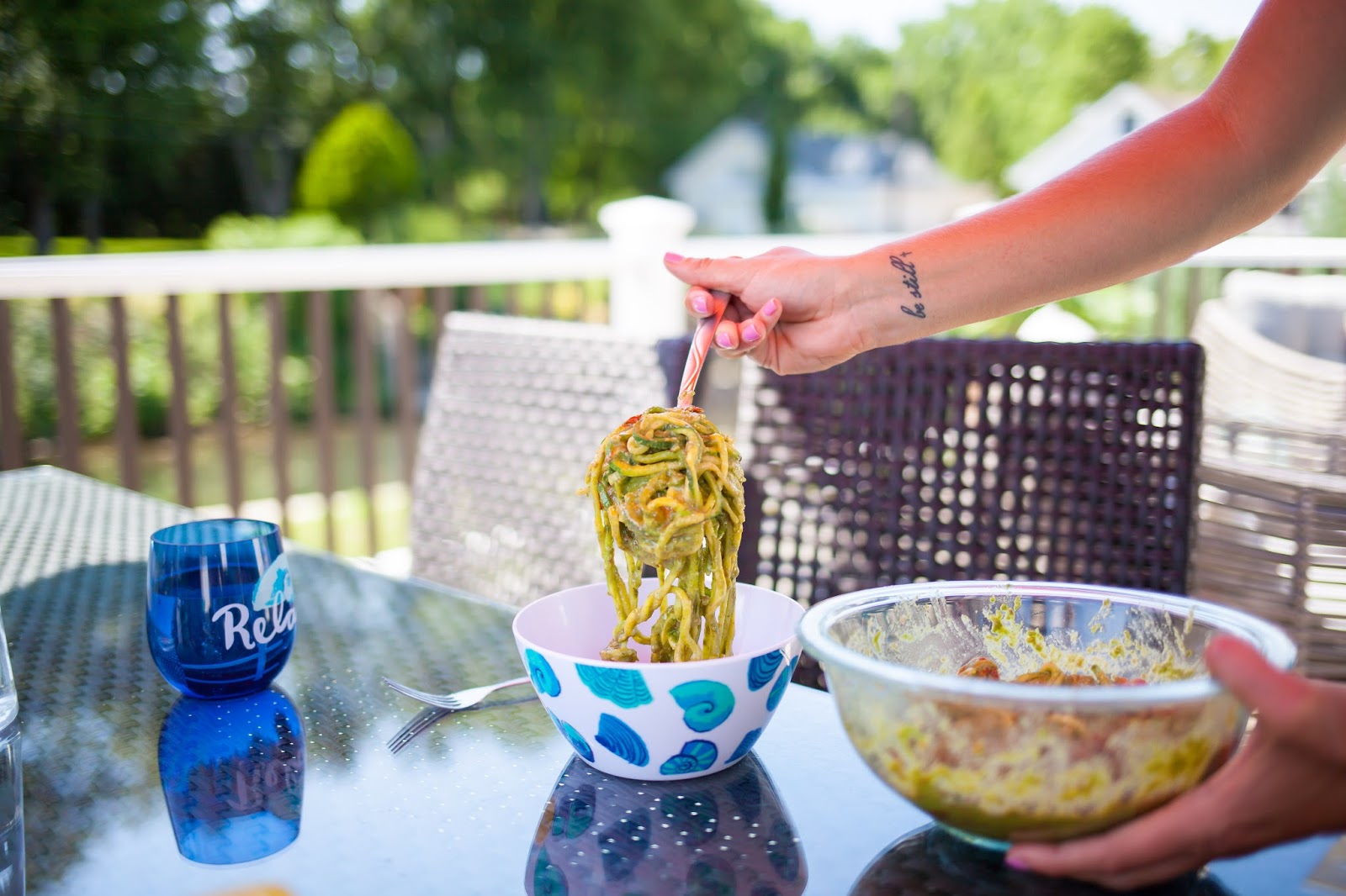 Last but certainly not least, we have another vegetable noodle dish. This time with zucchinis and the freshest pesto possible!
