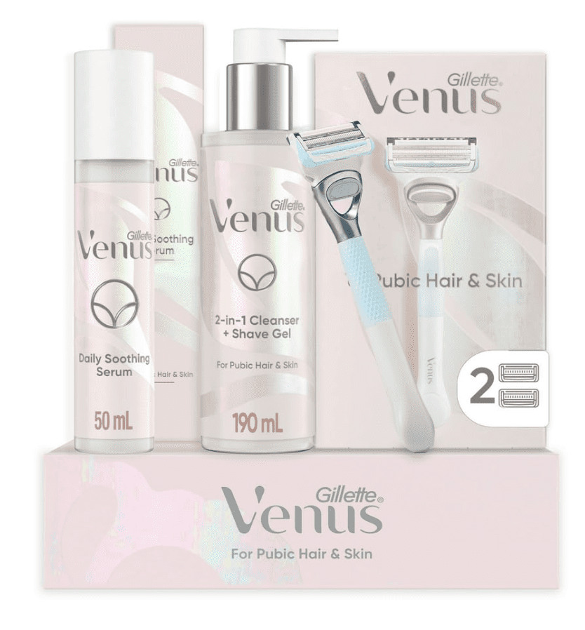 Pubic Hair and Skin Razor // Cleanser and Shave Gel // Soothing Serum