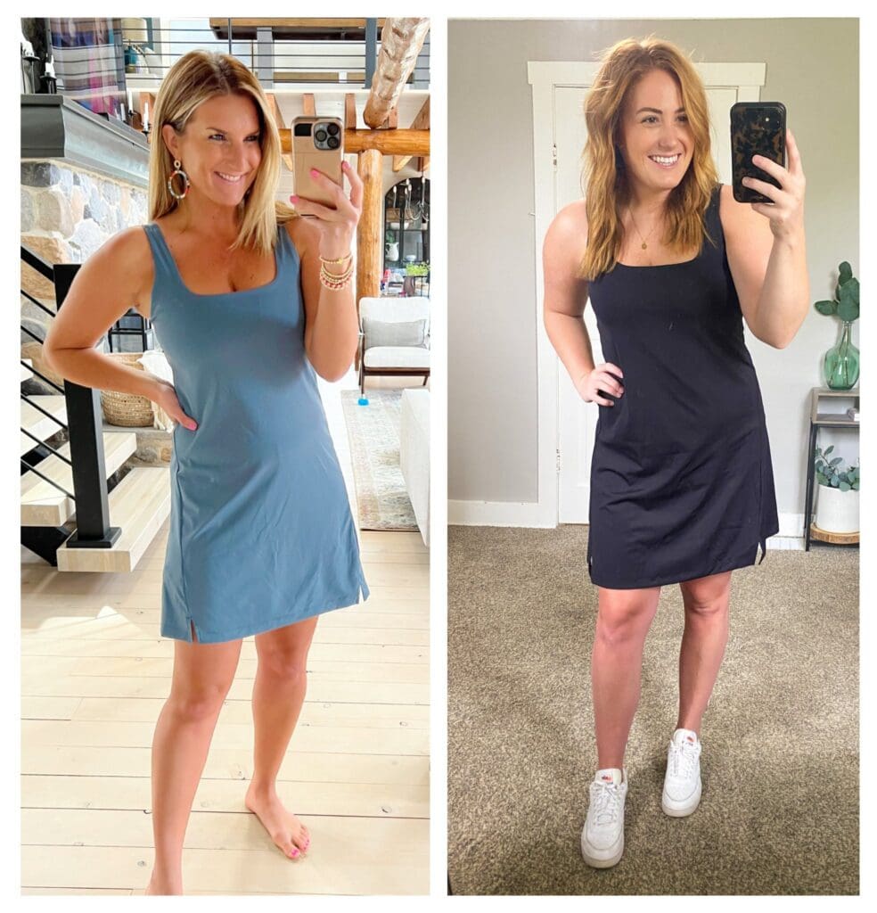 If you’ve been on the fence thinking about trying one of these comfy cuties, we are sharing are favorite activewear dresses here on a variety of heights and sizes. Let’s take athleisure to a whole new level, friends…