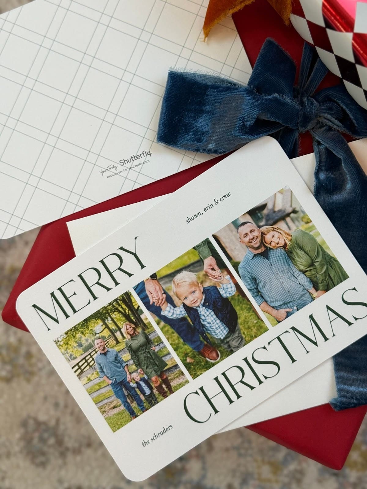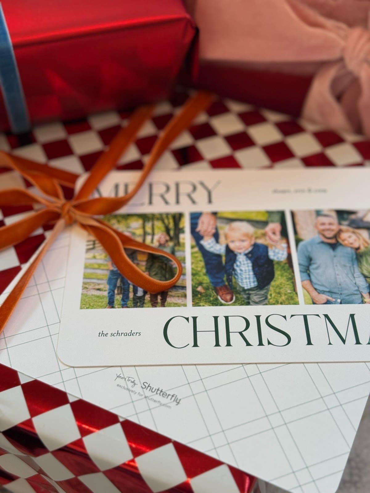 Now that Crew is in tow and we were fortunate enough to get some cute fall family photos taken, I knew it was time to make it happen – no more excuses. All it took was about a 5-minute visit to Shutterfly, and within a few days, they were at my door! Does somebody have a “that was easy” button I can push because wow, that was easy. Shutterfly has the cutest offerings of Christmas & Holiday Cards, and as long as you know how to upload a photo, the rest is easy peasy, 1, 2, 3 thanks to their pre-made designs and templates!