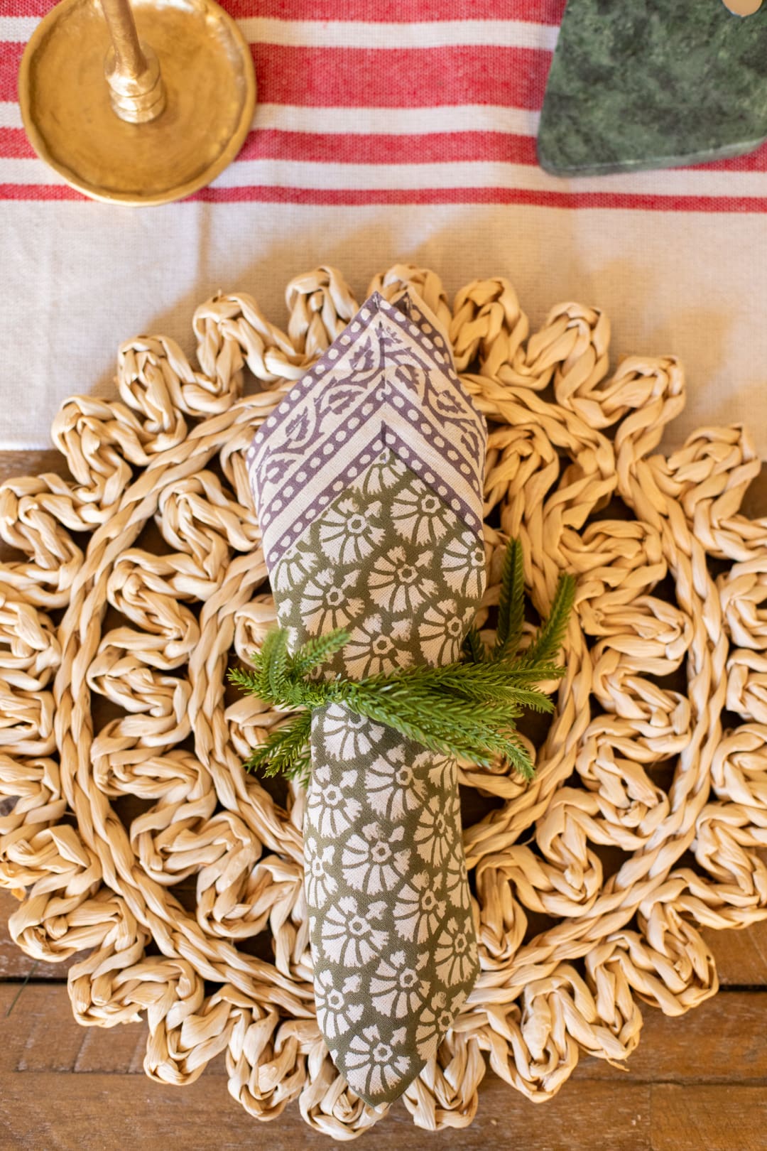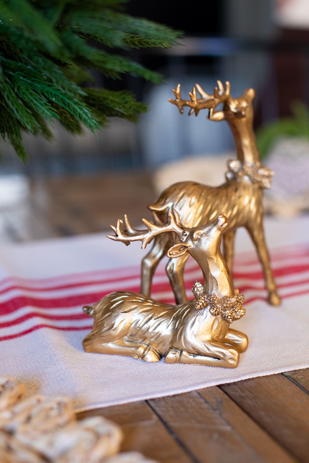 Gold Deer // Table Runner // Placemats // Greenery // Vase // Napkins // Wreath Napkin Rings