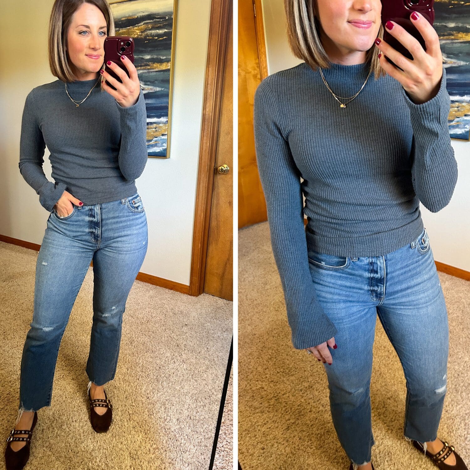 Ribbed Bell Sleeve Soft Top [True to size, wearing in Small] // Jeans [size down one] // Flats [true to size]
