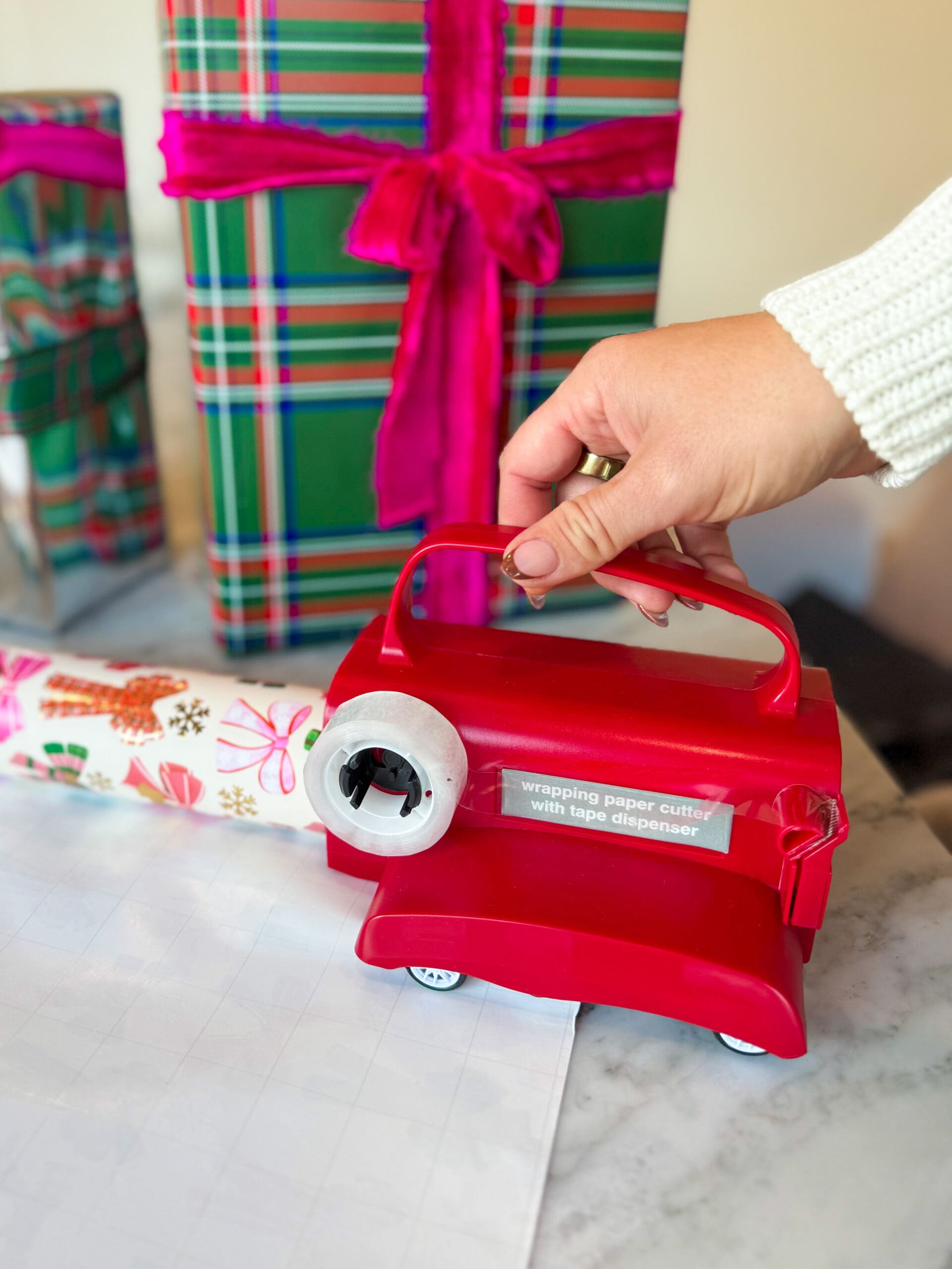 It cuts a perfectly straight line with ease, and keeps your tape right there to easily access and pull! This wrapping paper buddy changes the game for wrapping presents for any special day!