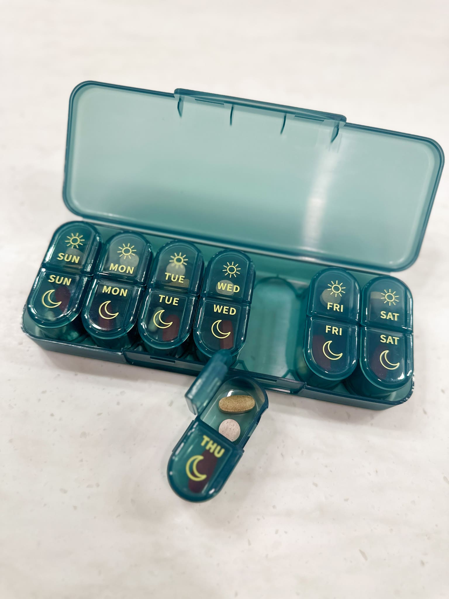 From morning to nighttime, this pill organized keeps you sane! No more questioning whether or not you took your vitamins and pills. I love the morning and night slots, and that the compartments are removable by day! This is great if you’re going on a weekend away and want to just take a few days with you! Under $10!